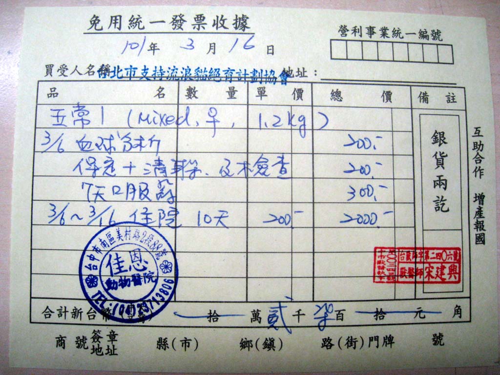 戶名:社團法人臺北市支持流浪貓絕育計劃協會