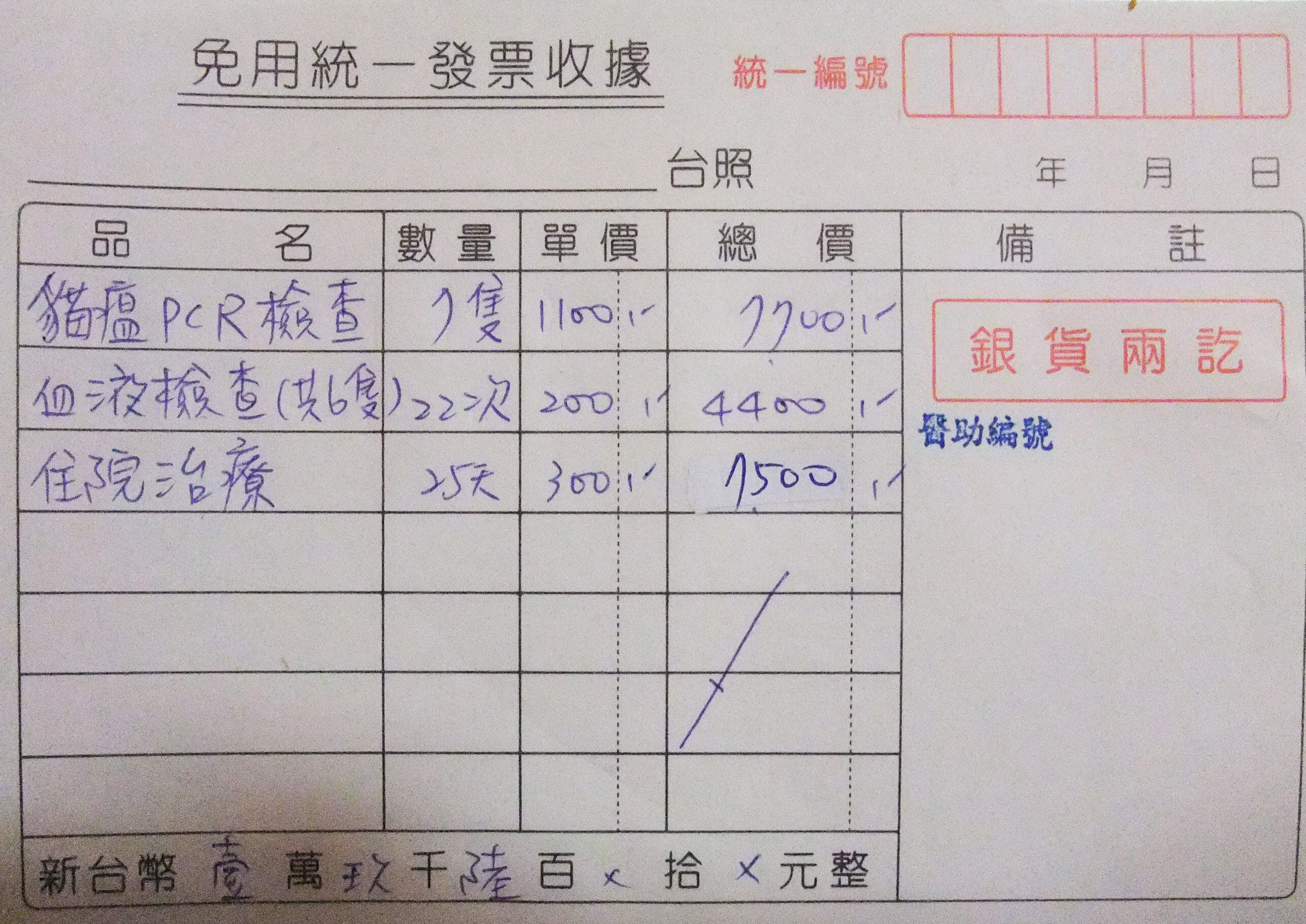 這次請求部份醫助的幫忙,志工接手尚存的一窩母帶子共4隻,及3隻被遺棄的幼貓,以上共7隻的部份治療費及檢驗費,在此感謝大家。