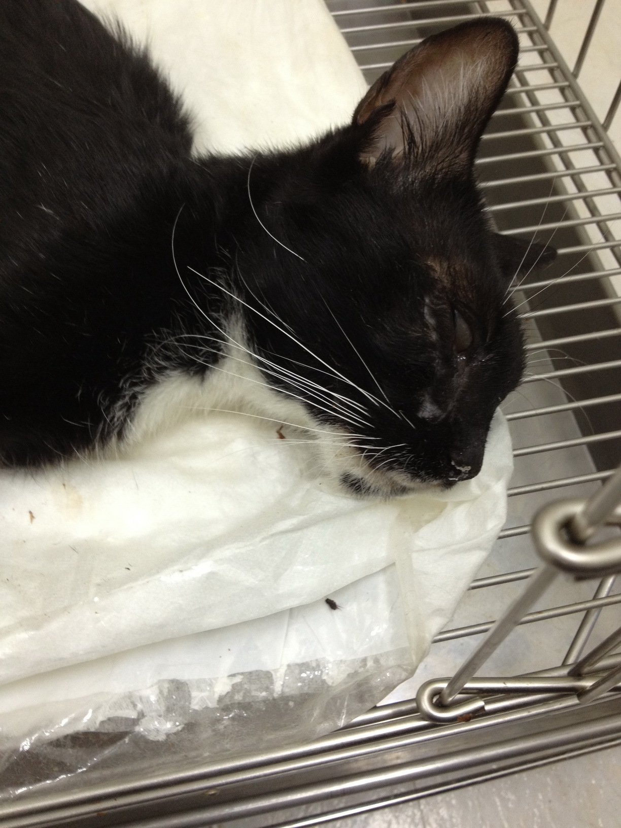主題: 原本一直在餵食的浪貓在颱風天過後出現,他已經看不見這個世界~~ 申請者姓名: 大笨牛 花色: 申請日期: 2012-09-11 19:02:37 申請者部落格: 申請者臉書網址: http://www.facebook.com/profile.php?id=1489838064 所在縣市/合作醫院: 新北市/三和動物醫院 治療費用: 4300元 需求人數: 11人 已結案 (2012-12-08 19:25:47) 報名人員: Leah(已付款)、尹榕(已付款)、TRACY(已付款)、Forest(已付款)、米小恩(已付款)、白胖胖(已付款)、Bei Bei Wang(已付款)、Wan Lu(已付款)、meemee(已付款)、許大衛(已付款)、Katilin Chang(已付款)、 候補人員: 小舟、小舟、小舟、 動物病情說明: 原本一直都在餵食的親人浪貓,在颱風的那幾天不見蹤影,直到最近這一週回來後,他抱著虛弱的身子,在店門口喵喵叫,身上還黏著黏鼠板,看樣子不太對,立馬帶他去掛急診,