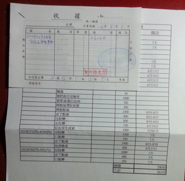 連續施打點滴、服藥治療一個多月,