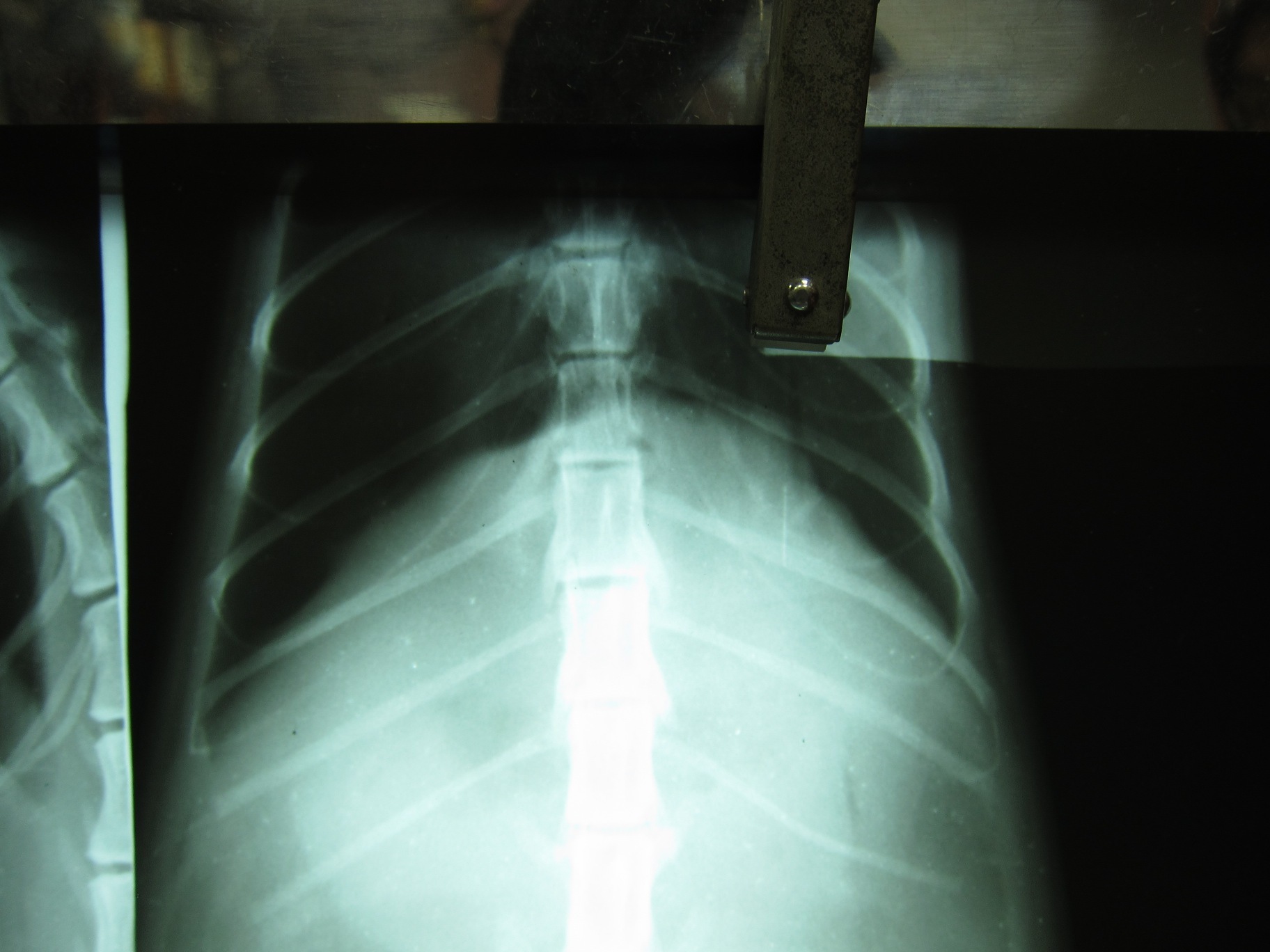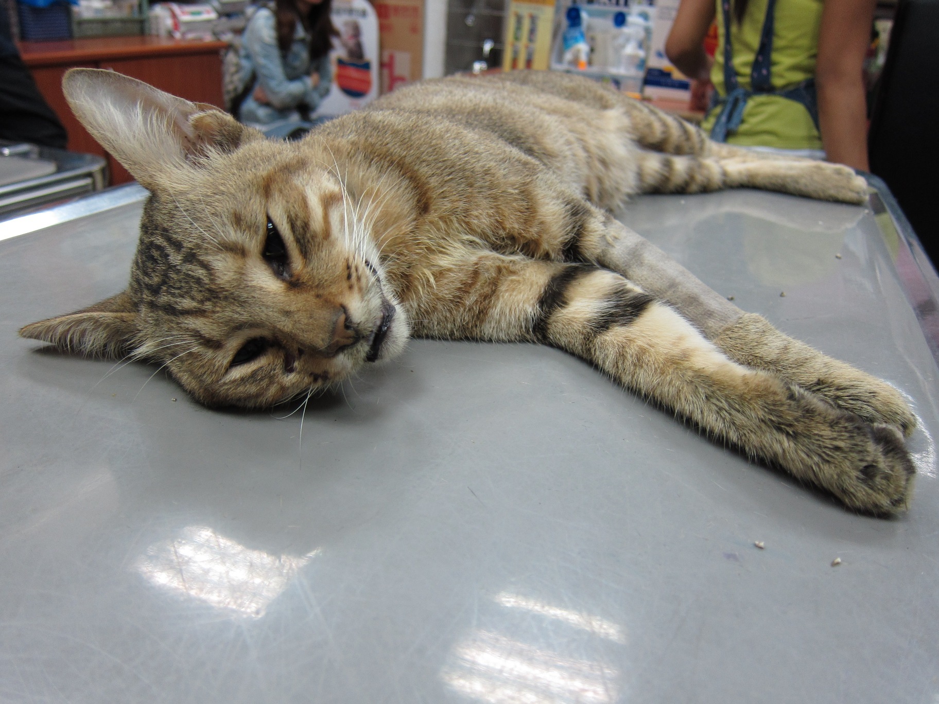 照完X光後,醫師發現有內出血,胰臟破裂,氣胸,有一部分的肝也破了,腎臟也受傷等等狀況。因為實在傷得很重,心跳跟呼吸也都漸漸微弱,只能靠吸氧氣支撐。不過最後還是撐不住就走了。動物近況說明: 他本來是社區貓,一直都跟不太友善的人類相安無事。