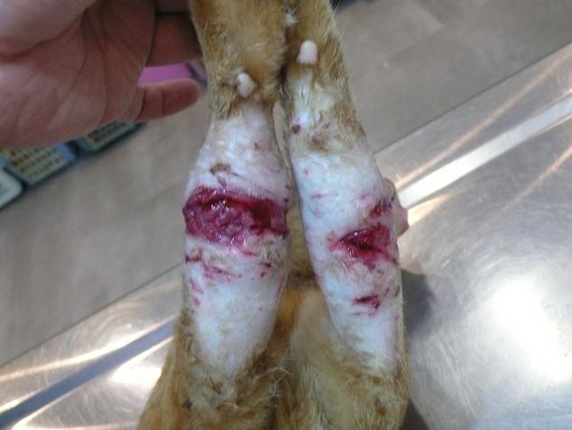 主題: 婦幼醫院的前腳上肢遭利刃重複割傷的橘公貓 申請者姓名: 王淑芬 花色: 申請日期: 2012-09-20 15:46:57 申請者部落格: 申請者臉書網址: 所在縣市/合作醫院: 台北市/長沁動物醫院 治療費用: 13240元 需求人數: 15人 已結案 (2013-06-27 13:37:28) 報名人員: Charlotte Su(已付款)、Hsing-hua Chang(已付款)、小貓(已付款)、SosaShen(已付款)、Derek Jao(已付款)、Derek Jao、T(已付款)、Jen Jen L(已付款)、梁咪子(已付款)、黃子馨(已付款)、Steffi Hsieh(已付款)、橘姆(已付款)、Nonie Huang(已付款)、Nonie Huang(已付款)、yaya(已付款)、Yenchung Chen(已付款)、 候補人員: 動物病情說明: 鐵沙掌是一隻已結紮的大橘公貓,這個名字是由醫院的張醫師所取的,因為牠的傷口經過利刃重複的割傷造成前腳上肢異常的腫大.