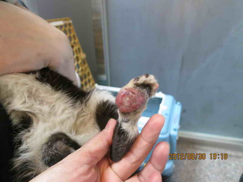 發現另一後腳有一大腫包,