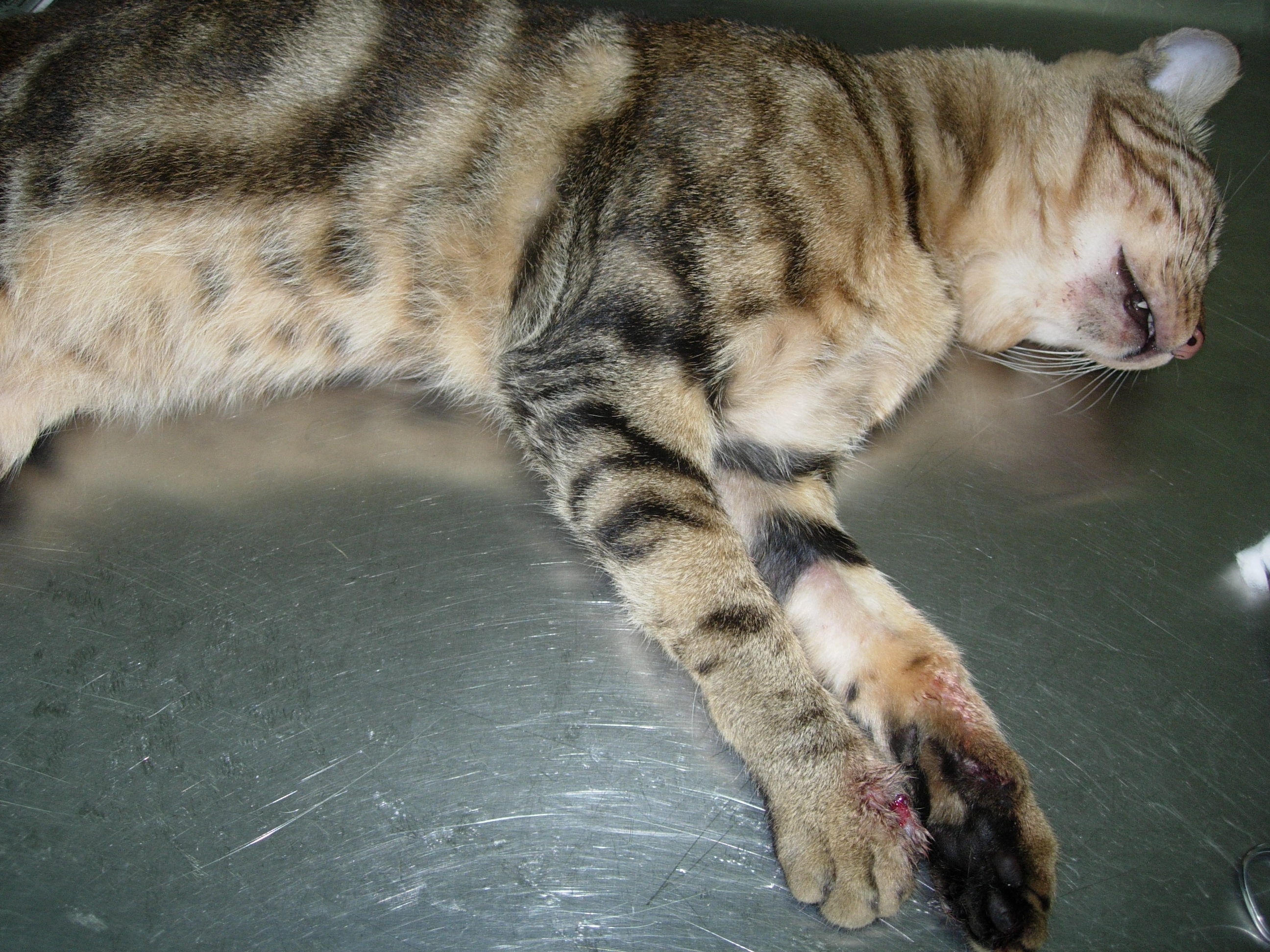 主題: 右前肢撕裂傷及絕育之公貓 申請者姓名: 張瓊安 花色: 申請日期: 2012-10-02 16:17:12 申請者部落格: 申請者臉書網址: 所在縣市/合作醫院: 新北市/福林動物醫院 治療費用: 2200元 需求人數: 9人 已結案 (2013-06-27 13:44:25) 報名人員: 小P(已付款)、小P(已付款)、小燕(已付款)、Hope Liao(已付款)、曾曾(已付款)、Steffi Hsieh(已付款)、大鼻(已付款)、陳依婷(已付款)、楊小馥(已付款)、 候補人員: 動物病情說明: 經民眾向協會通報保福路某路段有10隻以上街貓,由救援組長敏大哥帶工具,集合當地志工一同誘捕,再教導通報人如何誘捕,通報人抓到此公貓預絕育,同時發現牠右前肢有很大的撕裂傷,一併縫合處理。感謝所有願意幫助貓咪的人。