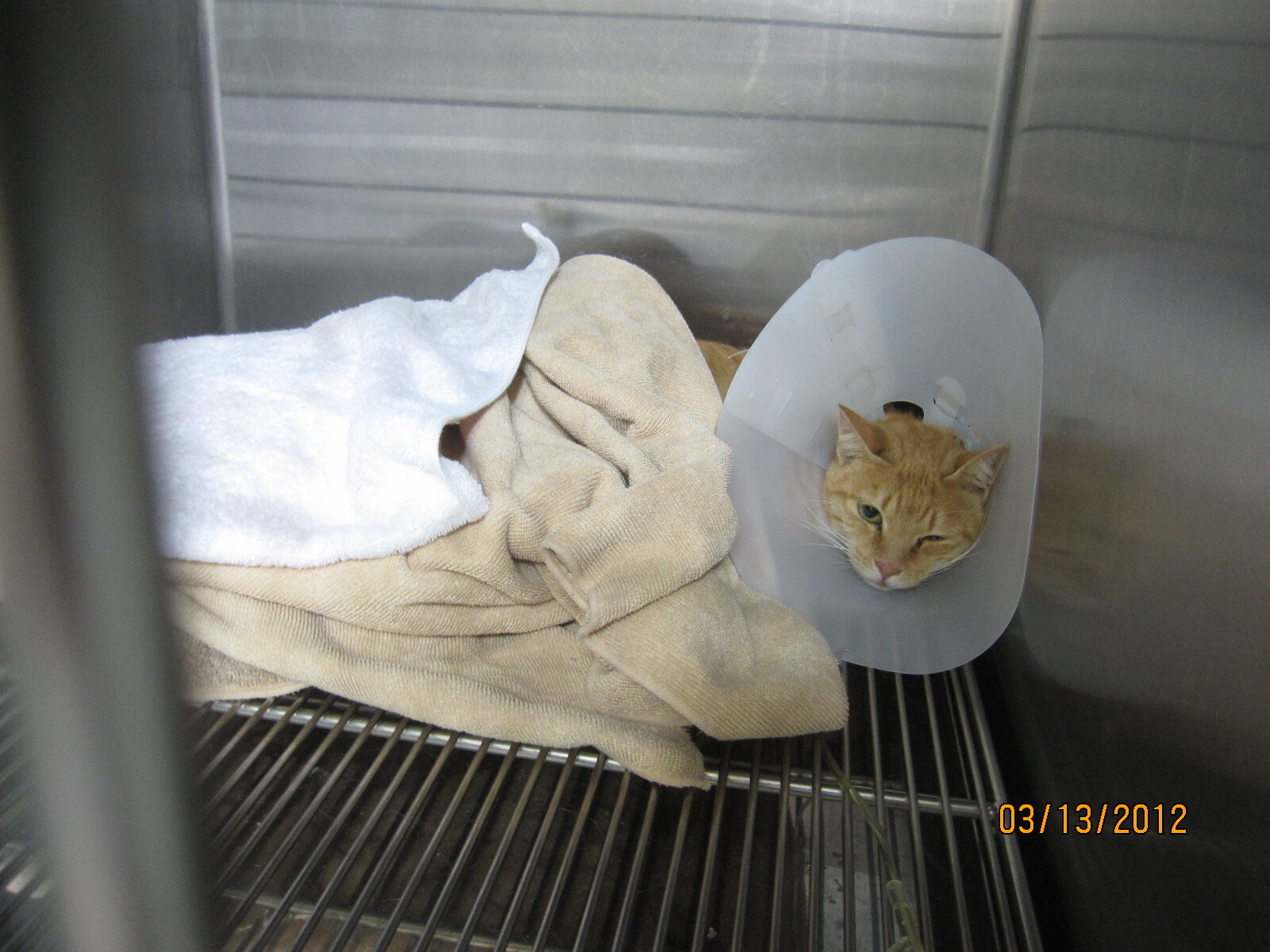 大橘貓因為嚴重腸炎,造成狂拉便,已治療康復,順利野放.(5500)