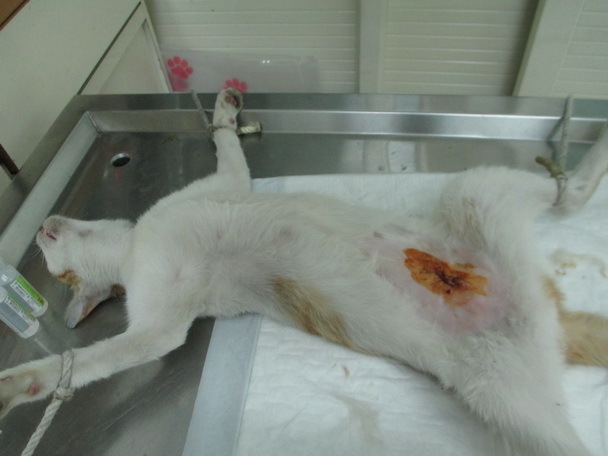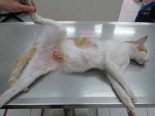 主題: 腹部傷口貓 申請者姓名: 敏大哥 花色: 申請日期: 2012-10-12 15:27:38 申請者部落格: 申請者臉書網址: 所在縣市/合作醫院: 台北市/欣旺動物醫院 治療費用: 3000元 需求人數: 8人 已結案 (2013-06-27 13:47:56) 報名人員: ADA(已付款)、ADA、黃翊寧(已付款)、Lo Chun Hung(已付款)、吳尼扣(已付款)、歐莉莉(已付款)、Li-Chi Tan(已付款)、Joanne Chen(已付款)、YiRen Kung(已付款)、 候補人員: 動物病情說明: 永和林小姐通報粉絲團.本來要抓眼球受傷貓.結果當天共捕抓3隻傷貓.這是其中之1. 送醫發現腹部有傷口.經麻醉檢查.發現是結紮傷口感染.經清創縫合及抗生素治療已痊癒.11日R回.此筆醫藥費謝謝大家的幫忙