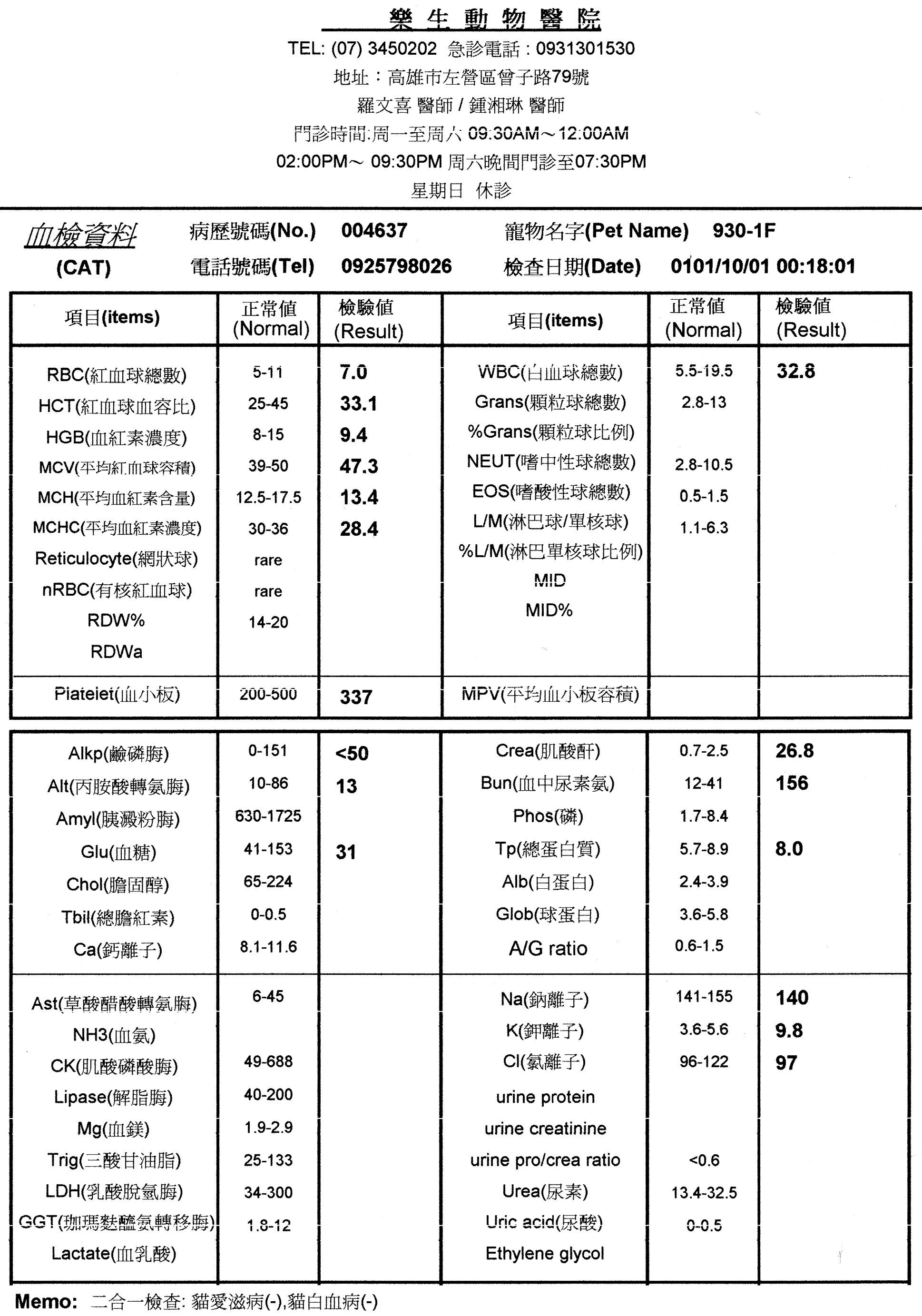 2.(ELISA)貓二合一血液檢查 500