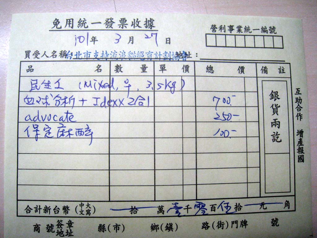 戶名:社團法人臺北市支持流浪貓絕育計劃協會