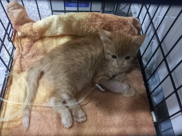 主題: 被車輾過的二個月小橘貓 申請者姓名: Sarah Lo 花色: 申請日期: 2012-10-23 23:42:51 申請者部落格: 申請者臉書網址: 所在縣市/合作醫院: 新北市/集賢愛生 治療費用: 11000元 需求人數: 24人 已結案 (2013-06-27 13:51:36) 報名人員: Alison Lee(已付款)、Katy Tai(已付款)、ㄚ芳(已付款)、詹羚涵(已付款)、Panda Huang(已付款)、王文玉(已付款)、iMADOKA(已付款)、Yiting Chen(已付款)、小花(已付款)、Helen Jao(已付款)、Ekim Lu(已付款)、BigMao(已付款)、龔巧鈴、Lo Chun Hung(已付款)、Bubu Wang(已付款)、龔巧鈴(已付款)、yymeow(已付款)、Hsin-wei Cho(已付款)、閻藤(已付款)、Fg Jan(已付款)、Iain 柳澤、ㄚ芳(已付款)、Claire葛(已付款)、Yen-Yuan Wang(已付款)、李安妮(已付款)、Kuen-Lin Tsai(已付款)、 候補人員: LizH、吳培培、Blair Huang、 動物病情說明: 這隻大約二個月的小貓在馬路旁一直哭哭叫著找媽媽,