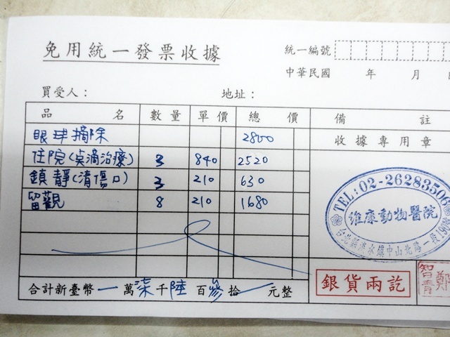 主題: 右眼眼球破裂嚴重感染的小橘貓 申請者姓名: 張胖子 花色: 申請日期: 2012-10-24 14:01:23 申請者部落格: 申請者臉書網址: 所在縣市/合作醫院: 新北市/維康動物醫院 治療費用: 7630元 需求人數: 17人 已結案 (2013-06-27 13:50:11) 報名人員: Athena Athena Tzeng、ㄚ芳(已付款)、BigMao(已付款)、AlcyonLayla Chen、紅豆(已付款)、HSU OG(已付款)、胡(已付款)、潘阿萬、林柏慶(已付款)、珊珊(已付款)、Yang Ying Ling(已付款)、涵涵(已付款)、Amanda(已付款)、王踢娜(已付款)、王踢娜(已付款)、王踢娜(已付款)、王踢娜(已付款)、Ling Lin(已付款)、王千枝 x2(已付款)、 候補人員: JeanChang、Melissa Lin、 動物病情說明: (新北市八里區)