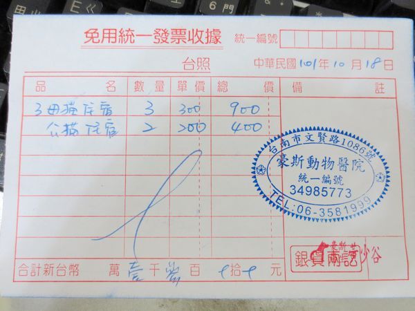 母貓3隻=300x3=900