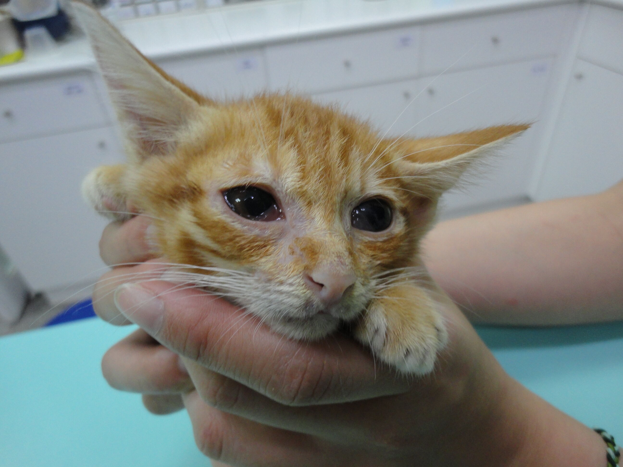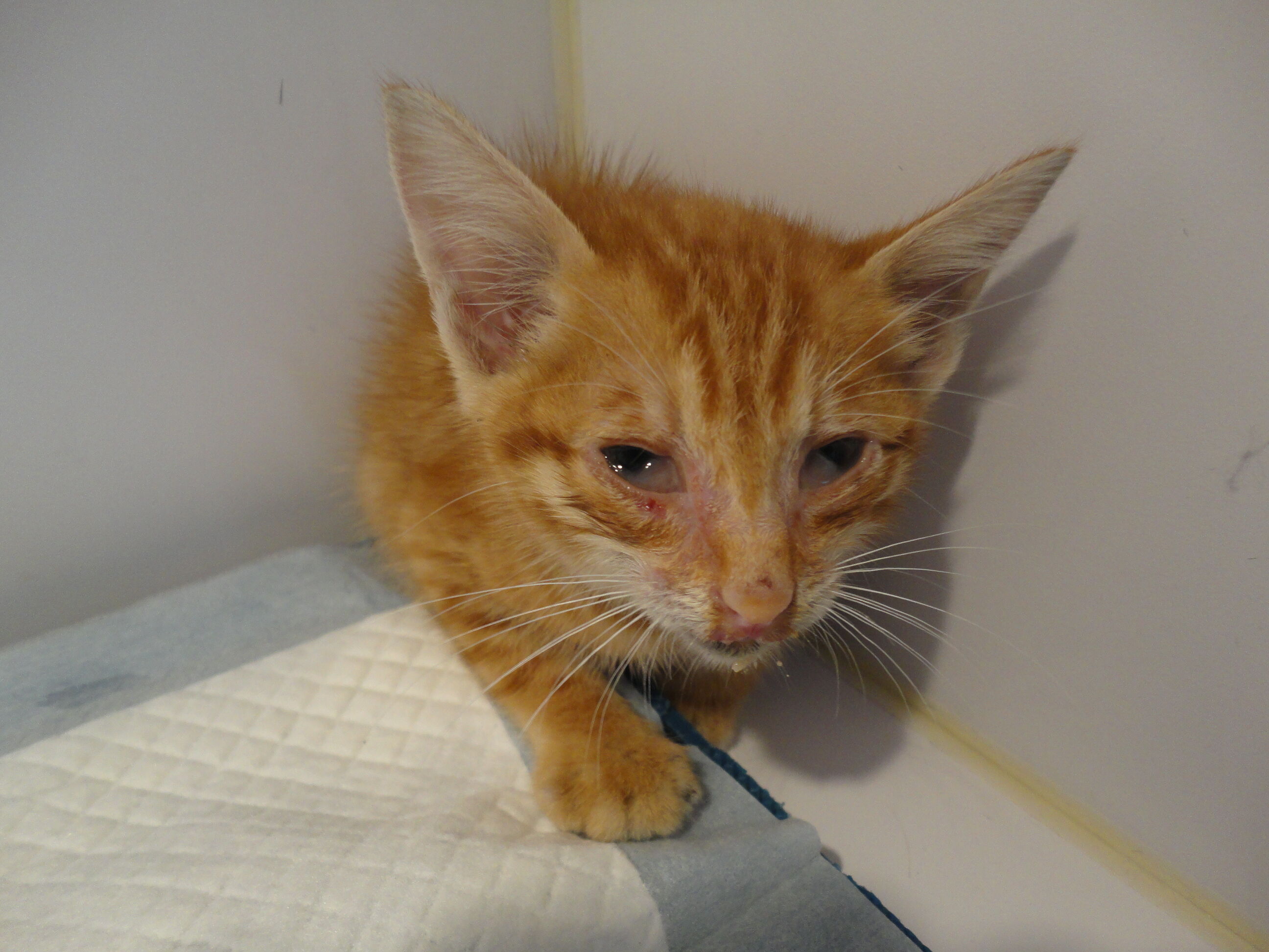 在嘉義國小前發現落單生病的小橘貓