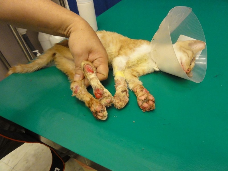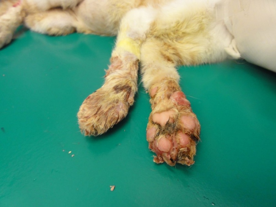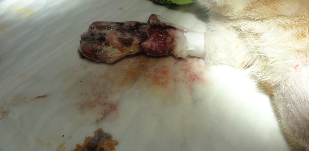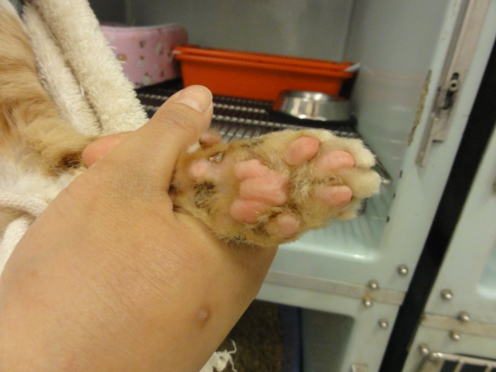 因為狀況滿嚴重的,很擔心腿會保不住..所以經由協會的安排,貓咪轉診到皮膚專科權威醫院治療