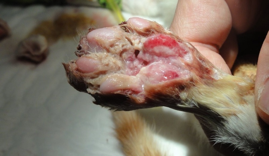 察覺腳掌有腫脹跡象,帶去醫院治療,但幾天時間卻越來越腫,四肢腳掌整個都爛了