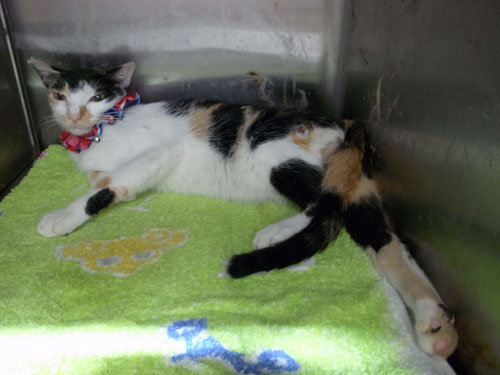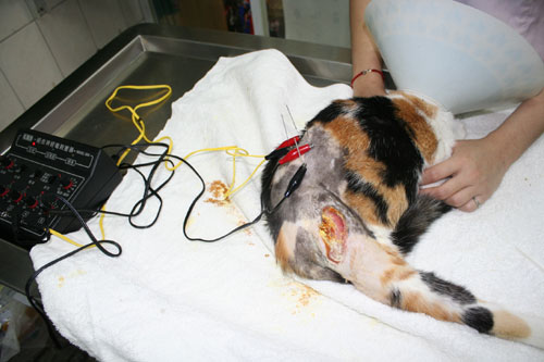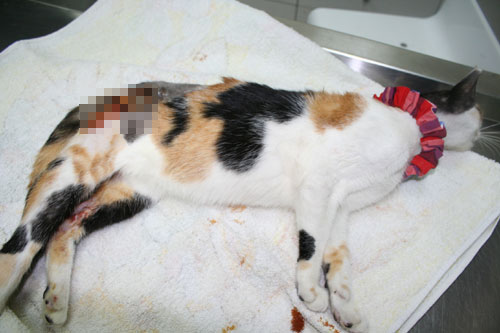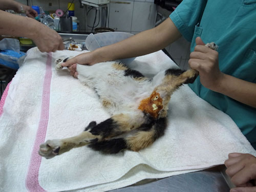 主題: 被狗咬傷嚴重的小玲 申請者姓名: 陳世芬 花色: 申請日期: 2012-11-07 02:56:36 申請者部落格: http://tw.myblog.yahoo.com/ni-blackcat 申請者臉書網址: http://www.facebook.com/fandy.chen 所在縣市/合作醫院: 高雄市/回生動物醫院 治療費用: 23220元 需求人數: 25人 已結案 (2013-06-27 13:54:27) 報名人員: 柯芳瑀(已付款)、曾美蓮(已付款)、李芸萱(已付款)、Ou Han(已付款)、chiawei(已付款)、水琳兒(已付款)、Ginger Chao(已付款)、Liao Tzuyi(已付款)、陳阿妹(已付款)、寶媽小T(已付款)、Fandy(已付款)、紅茶(已付款)、日安飛舞(已付款)、WINGS(已付款)、WINGS(已付款)、朱先生(Fandy代捐)(已付款)、惠惠(已付款)、由紀子(Fandy代捐)(已付款)、chiawei(已付款)、Wanshih Lin(已付款)、Han(Fandy代捐)(已付款)、dplantis(已付款)、Chia Min Chen(已付款)、協會代皮媽小鋪報名(已付款)、協會代皮媽小鋪報名(已付款)、 候補人員: 動物病情說明: 小玲是在高雄前鎮市場的TNR貓咪,被狗咬傷嚴重,當初發高燒超過40度,不吃不喝,身上多處傷口,最嚴重的是右後腿,走路拖行著右腿,緊急送醫治療,剛開始白血球指數超標近39000,因為傷口發炎,化膿深及骨頭,又有呼吸道感染,治療傷口加上同時每天針灸電療,等傷口沒有化膿,再動手術縫合傷口,傷口已康復,但右後腿神經受損,只能伸直無法縮起,末稍神經有輕微反應,出院後會持續照顧。
