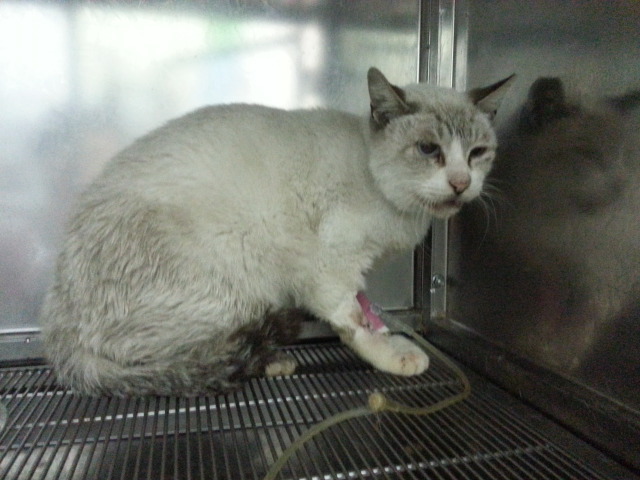 主題: 誤食尖銳物口腔舌根潰爛的暹羅街貓 申請者姓名: 岳丹楓 花色: 申請日期: 2012-11-07 14:39:05 申請者部落格: 申請者臉書網址: 所在縣市/合作醫院: 台北市/澄毅動物醫院 治療費用: 4350元 需求人數: 10人 已結案 (2013-06-27 13:53:54) 報名人員: yymeow(已付款)、Vanessa Cheng(已付款)、愛上一隻貓(已付款)、愛上一隻貓(已付款)、Amy(已付款)、Amy(已付款)、Jennifer Su(已付款)、苑舉民(已付款)、Celena Yu(已付款)、April Fu(已付款)、 候補人員: naomi、 動物病情說明: 這隻暹羅街貓原先是由一位華僑愛心嬤嬤認養的很親人