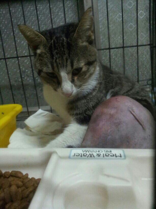 10/28我去霧峰國小打球完順便餵貓的時候百姓公廟的大哥趕緊跟我說貓咪被三四隻野狗追趕,後來回來腿就好像斷掉不能走了!!