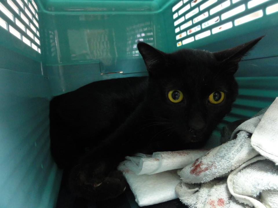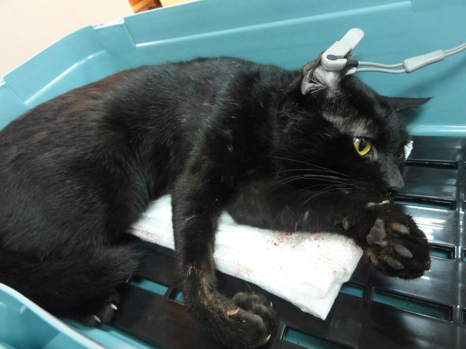 當時貓咪躺在血泊中動彈不得,