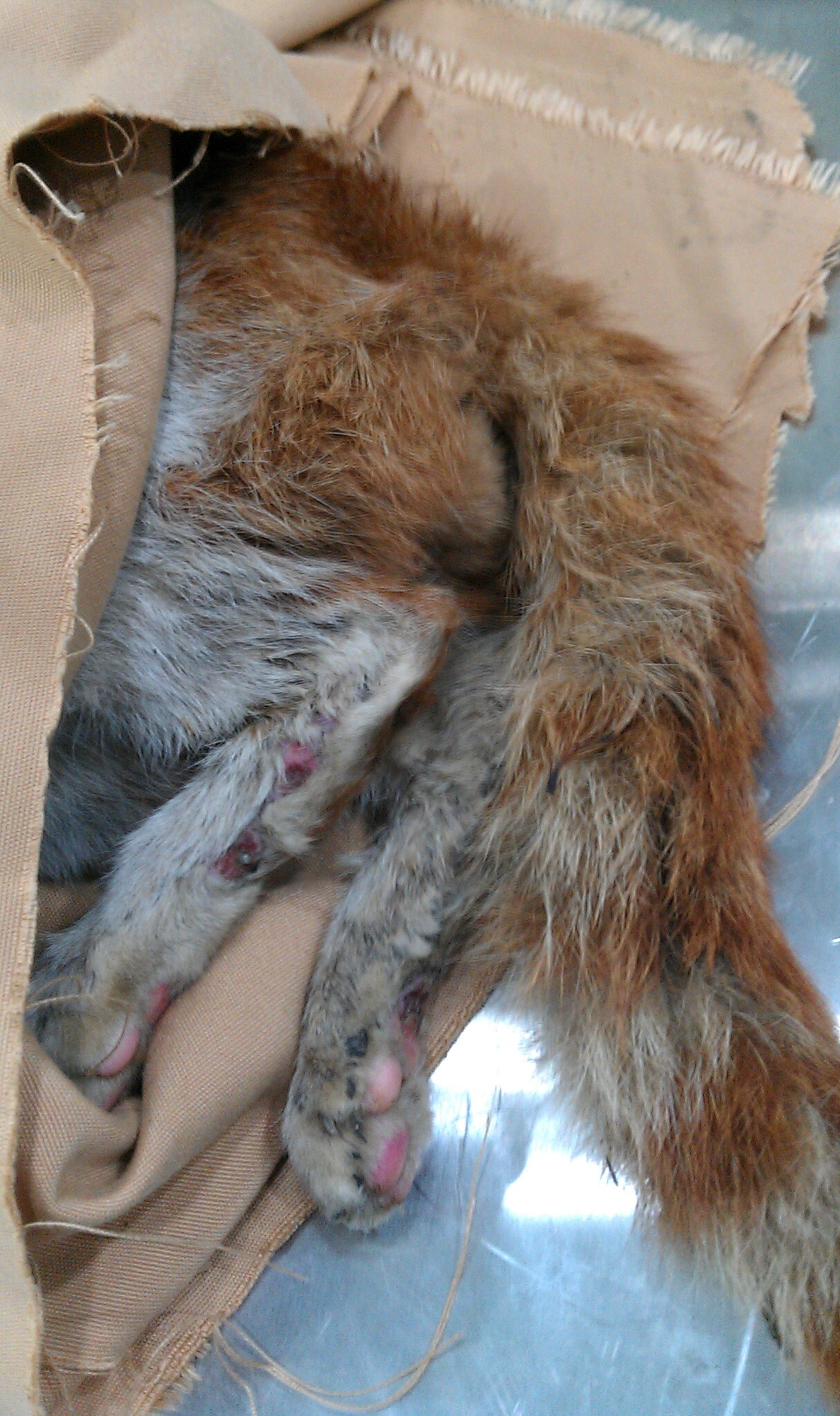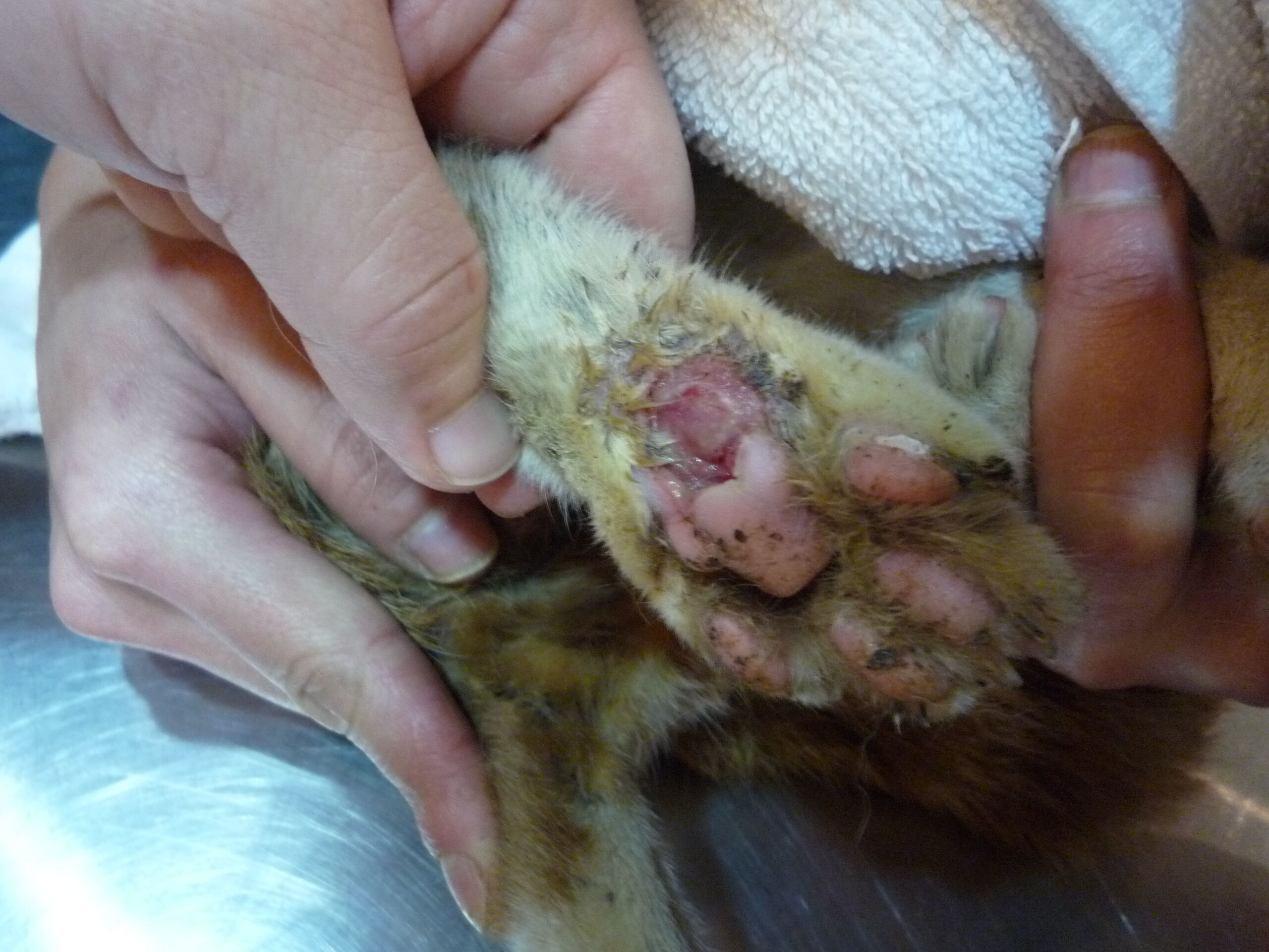 檢查身上的傷口~因為貓咪已經沒有力氣抵抗