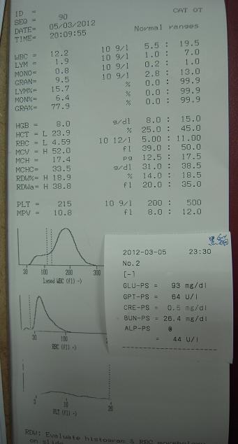 主題: 皮膚多處外傷加脫水現象及呼吸道感染的廟宇黑貓 申請者姓名: 花色: 申請日期: 2012-03-31 23:58:36 申請者部落格: 申請者臉書網址: 支持流浪貓TNR 所在縣市/合作醫院: 高雄市/藍天動物醫院 治療費用: 6000元 需求人數: 6人 已結案 (2012-04-25 09:20:48) 報名人員: Demi Huang(已付款)、鴉片媽(已付款)、Viana Yin(已付款)、鄭筱雯(已付款)、丁小丁(已付款)、jimmy(已付款)、 候補人員: 動物病情說明: 3/5到院時留著鼻膿及眼屎,