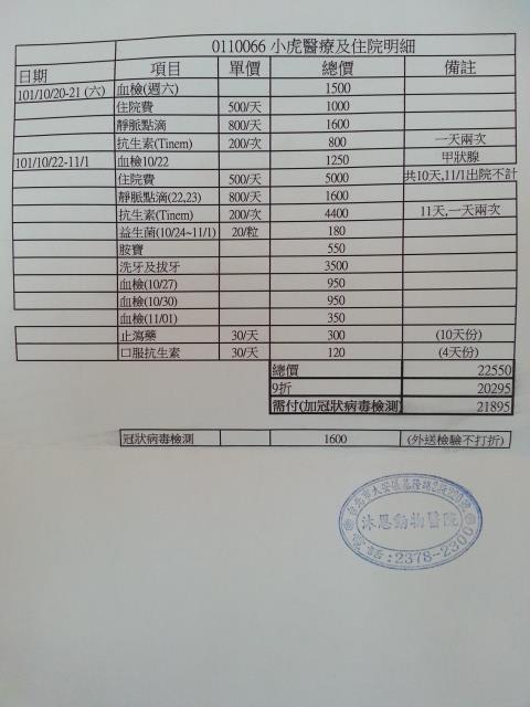 第二間醫院在用藥部分加強,並送台大做檢驗冠狀病毒後確定並不是腹膜炎,