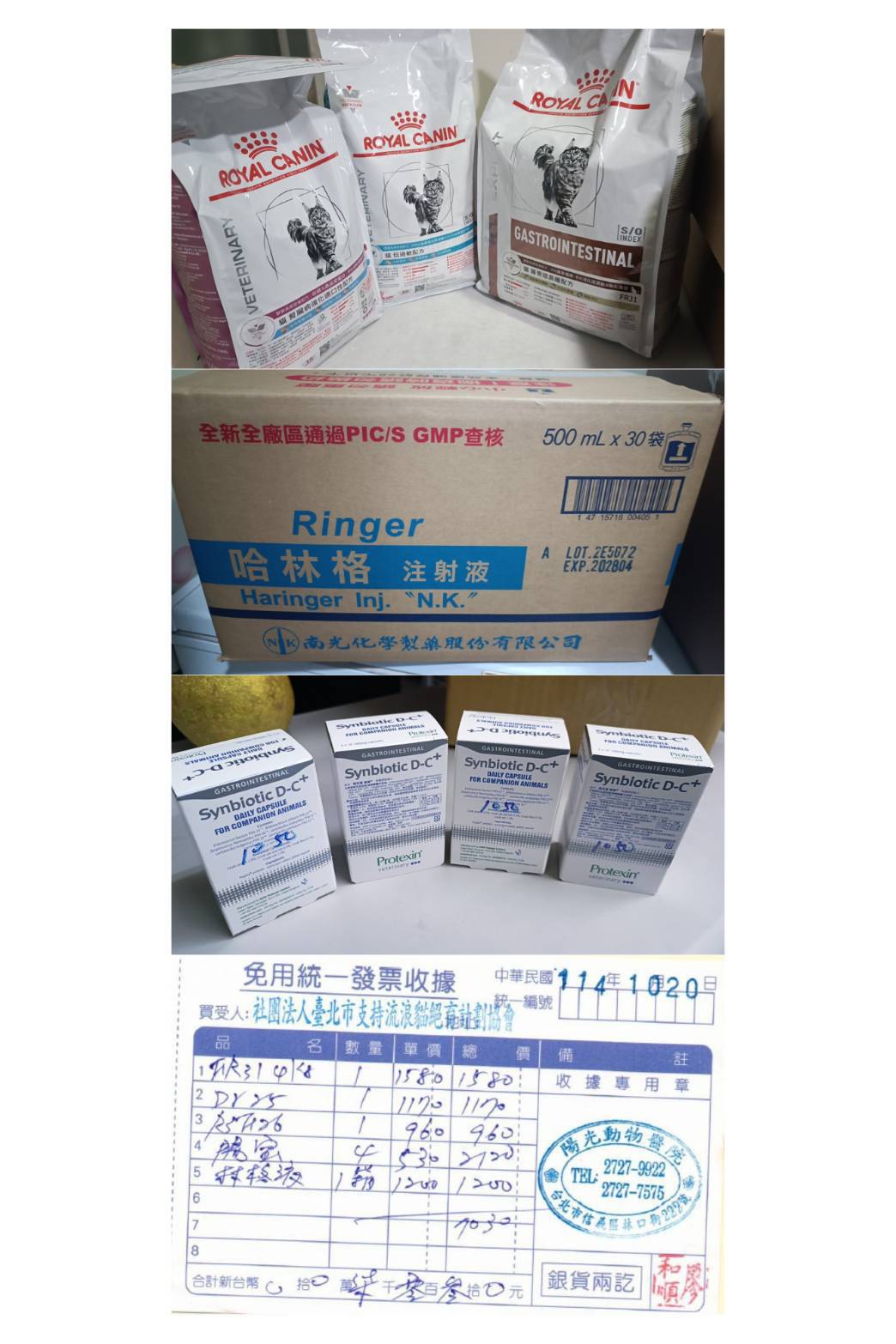 8月24日民眾再次通報,居民帶了隻母貓在自家院子生下的尚未斷奶小貓找她,媽媽應該是被抓去絕育。於是由協會義工帶回餵養,小貓應是8月初左右出生,目前正嘗試斷奶。,本筆醫助是2025年9月18日至2025年9月22日於欣旺醫院的費用,包含看診及預防針和糞便檢查。