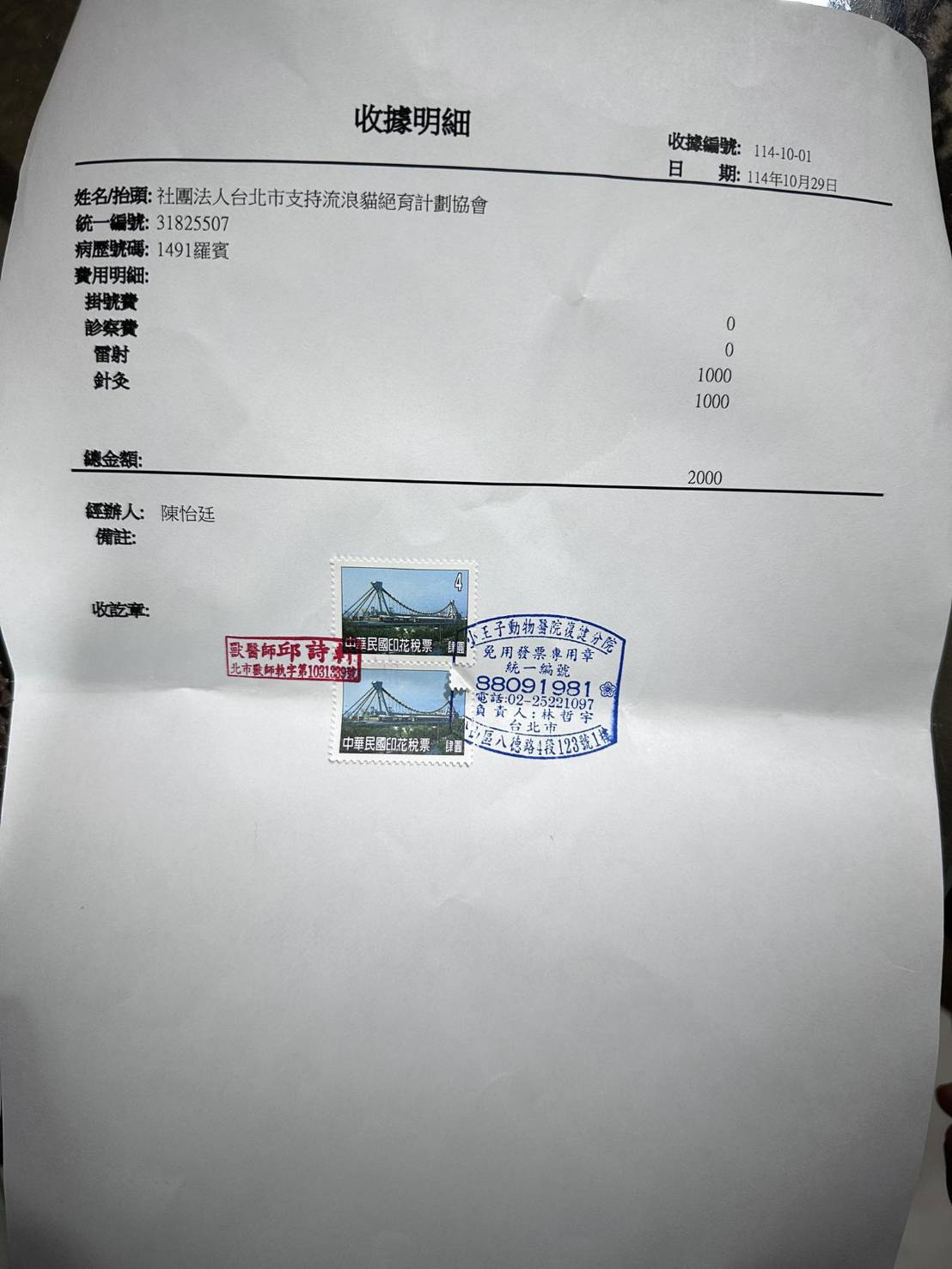戶名:社團法人臺北市支持流浪貓絕育計劃協會