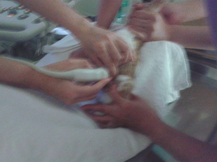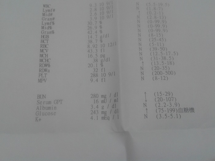 不單純是脫水+腸子有異物(照超音波+X光)+腎指數過高(抽血檢查)