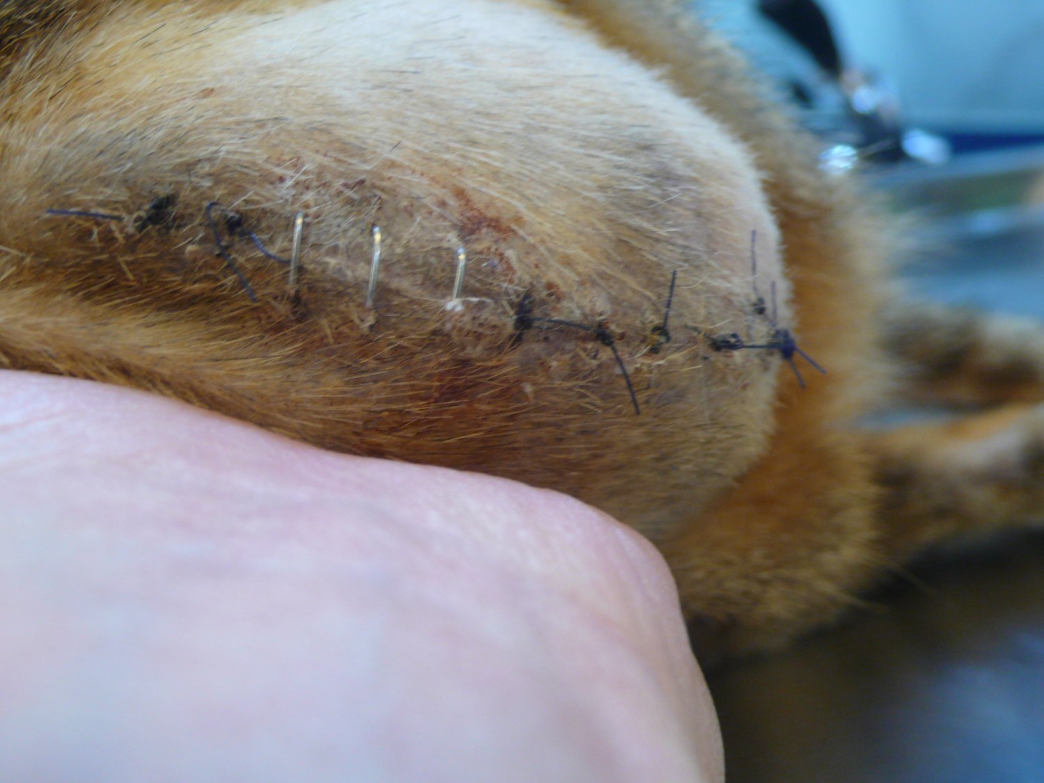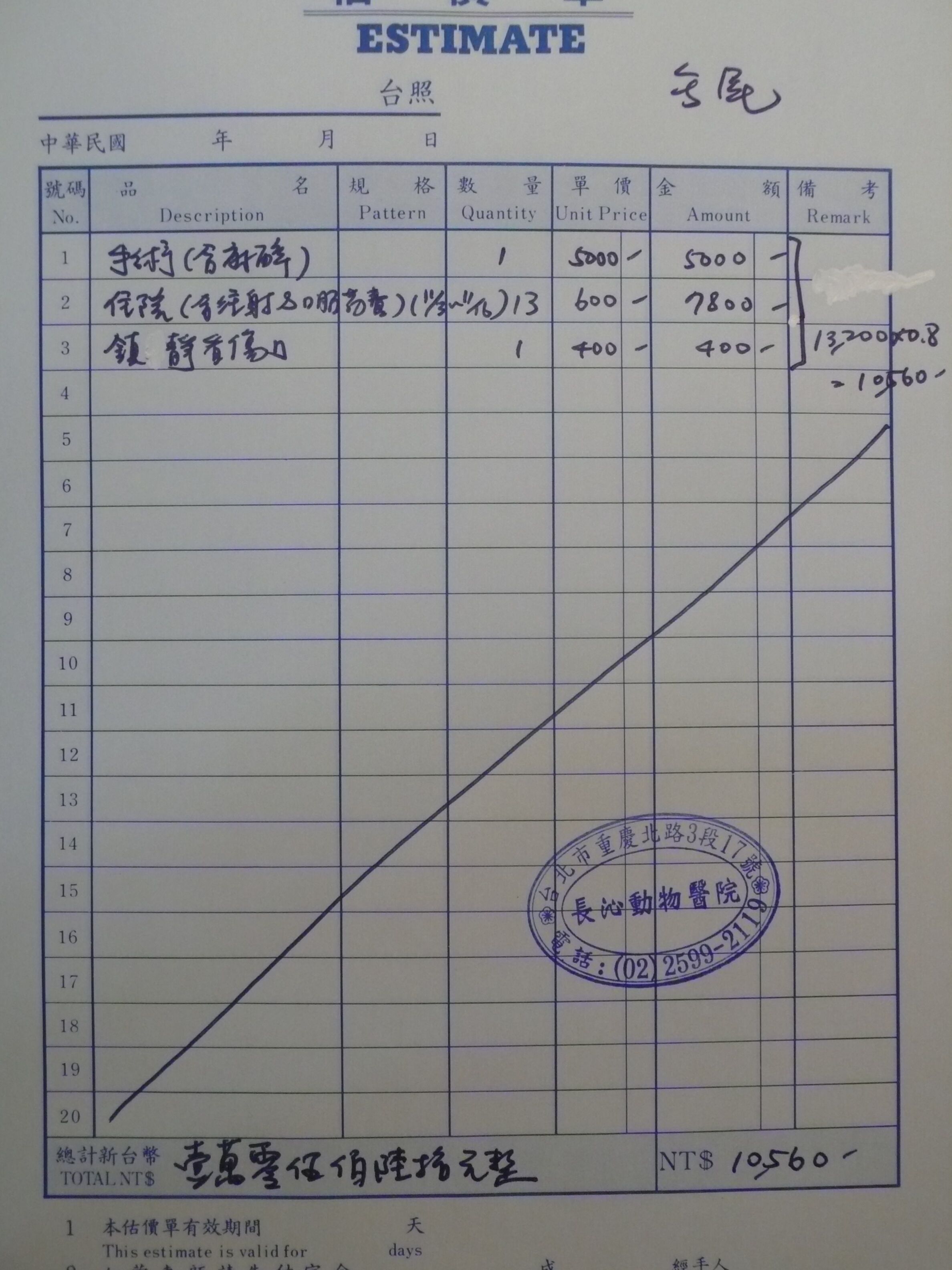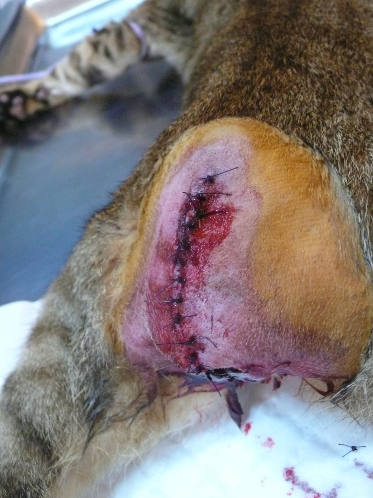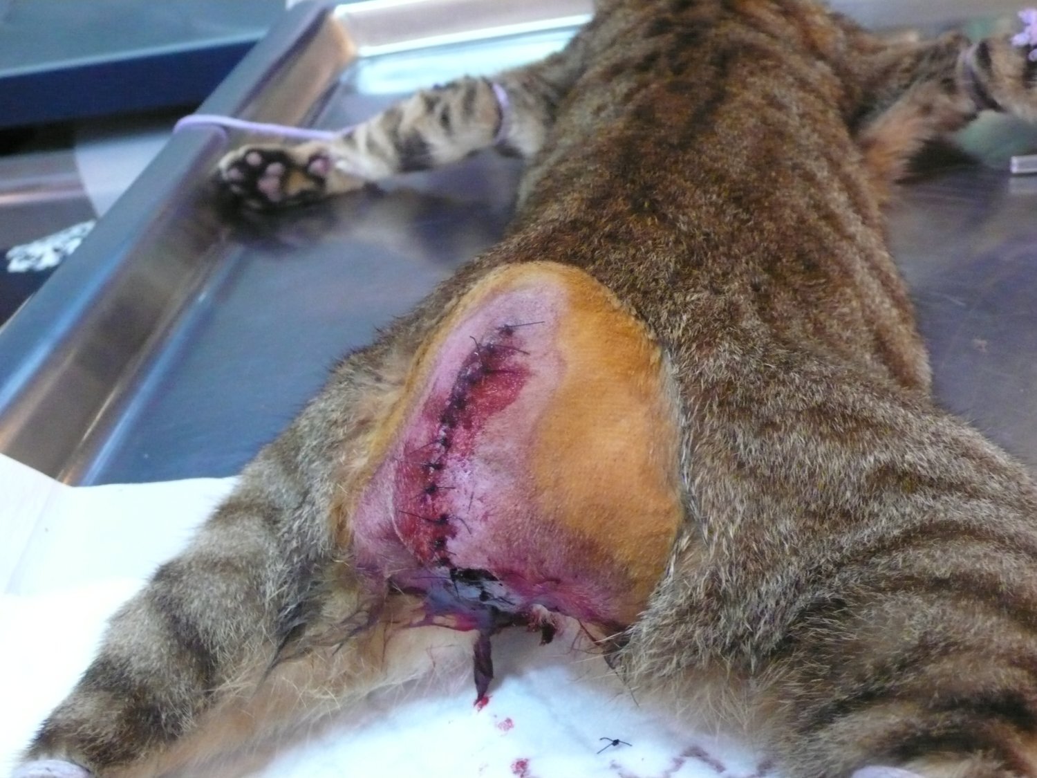 原先送到在地一家配合醫院,但該院只有做結紮手術,尾部受傷部分,說
