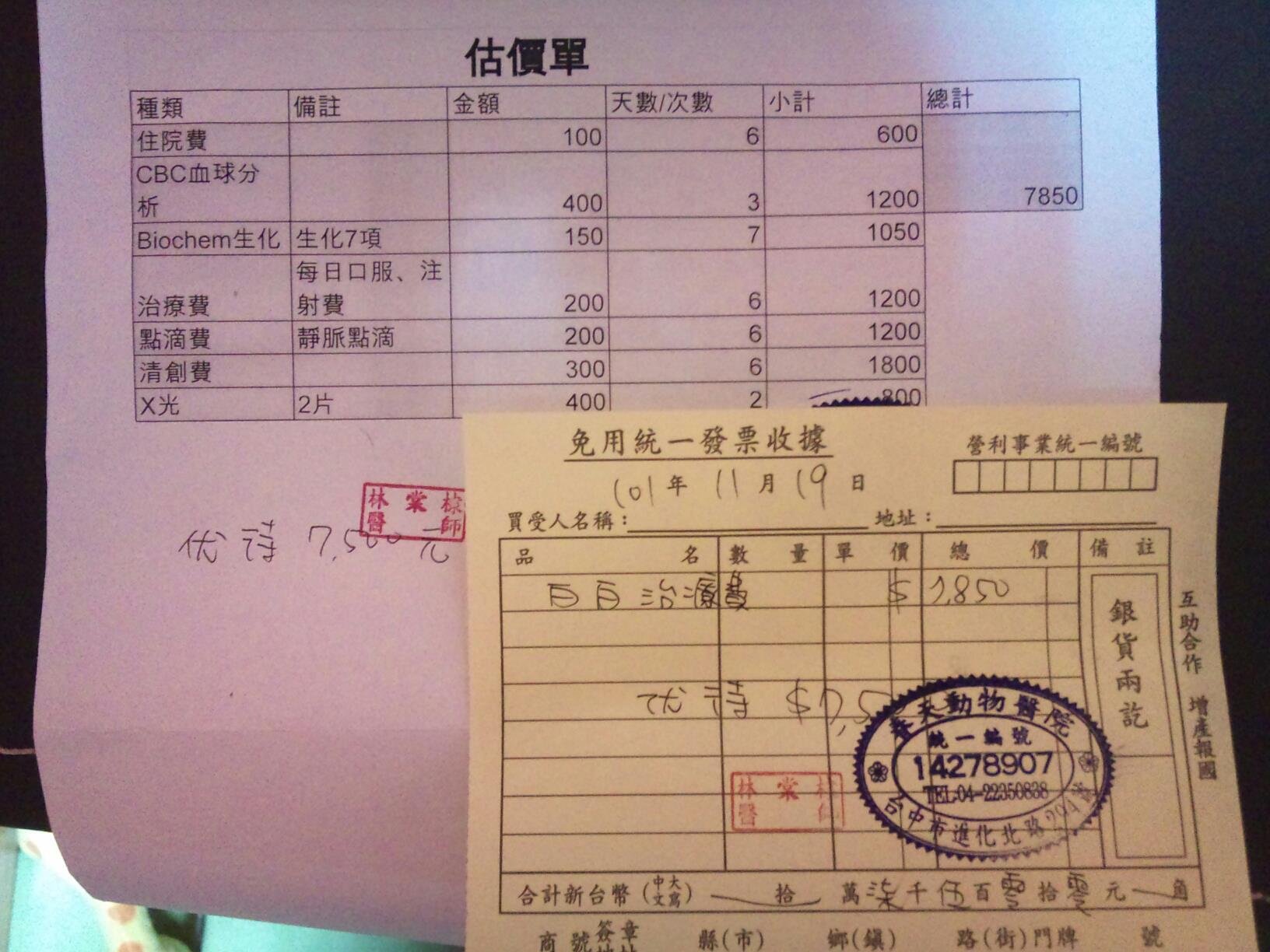 11.13晚上送至台中春天動物醫院