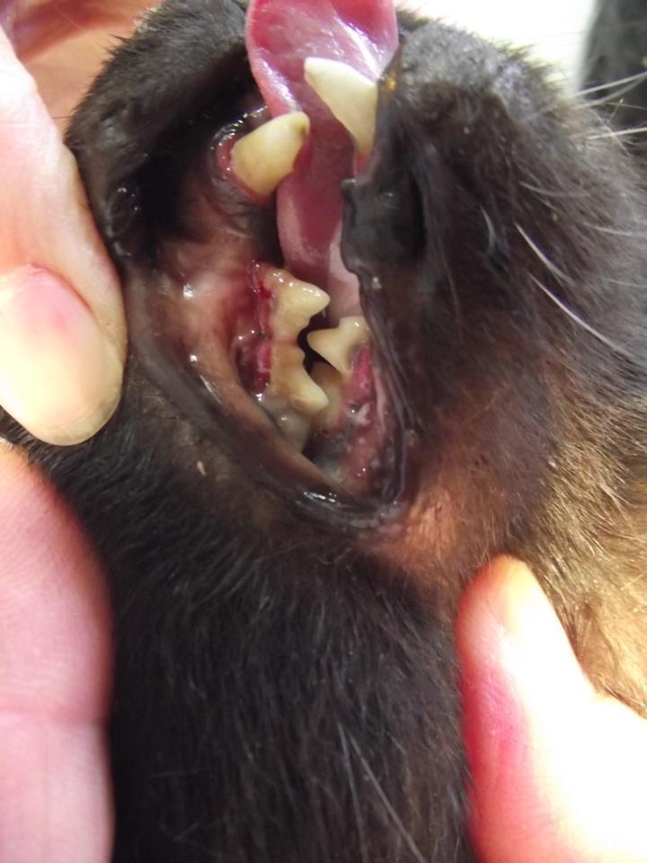有牙結石,給予拔除蛀牙及洗牙,並結紮植入晶片後放回原地。