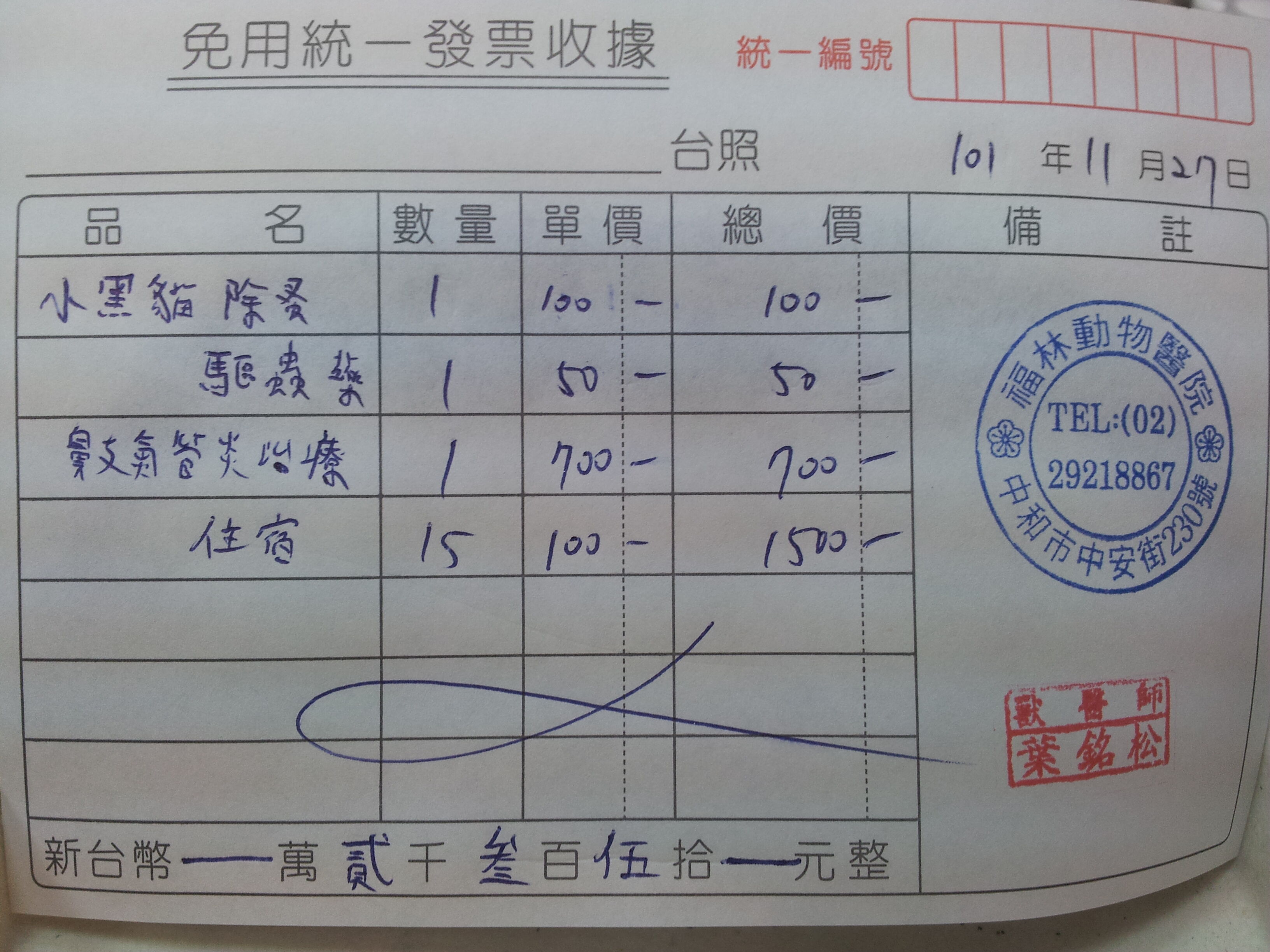 包含當天打針250及三週藥費450,一週150