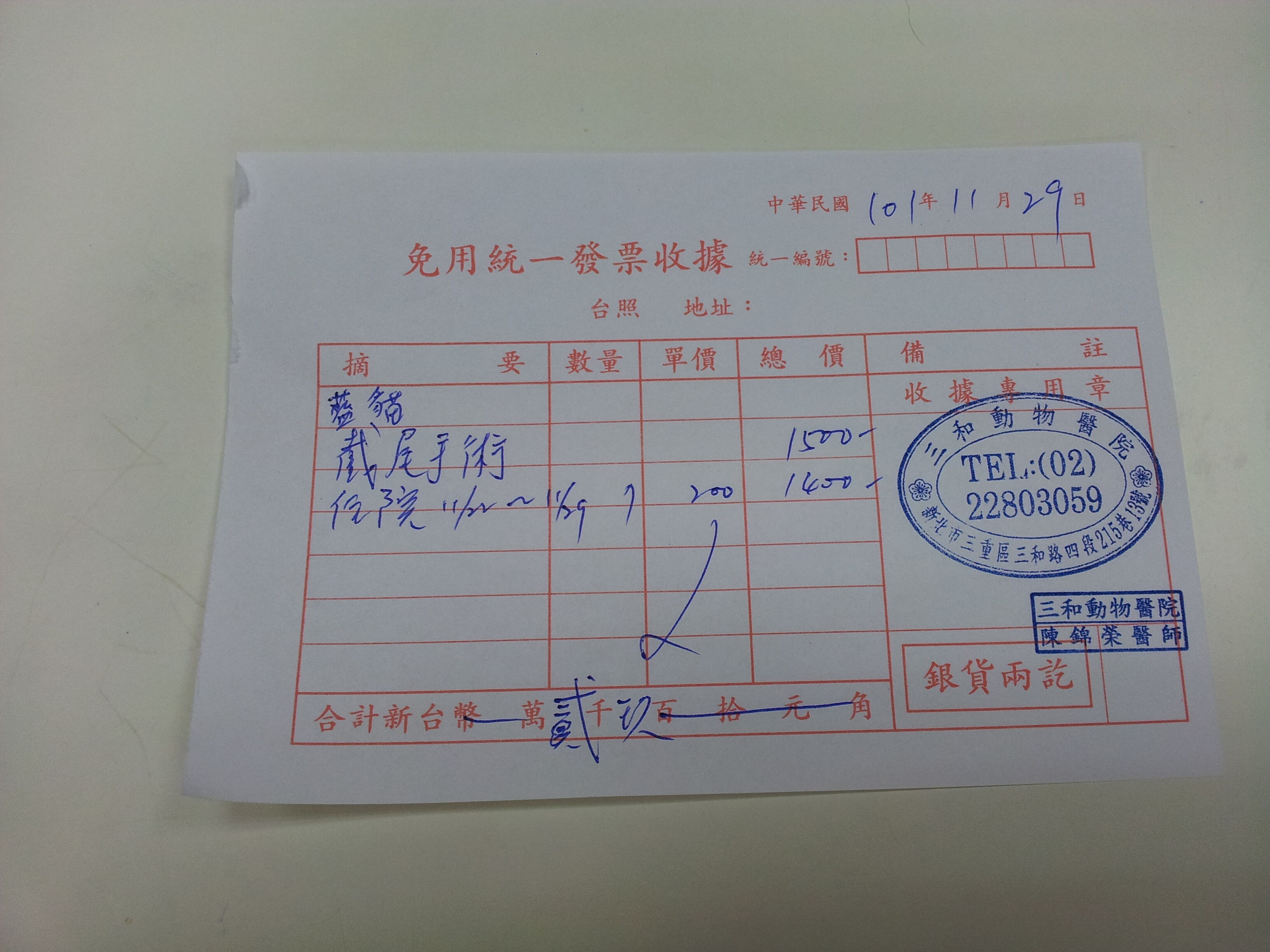 在醫生的安排下..幫小藍貓做了截尾和結紮的手術...