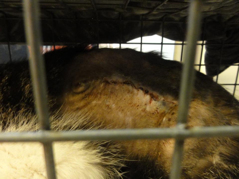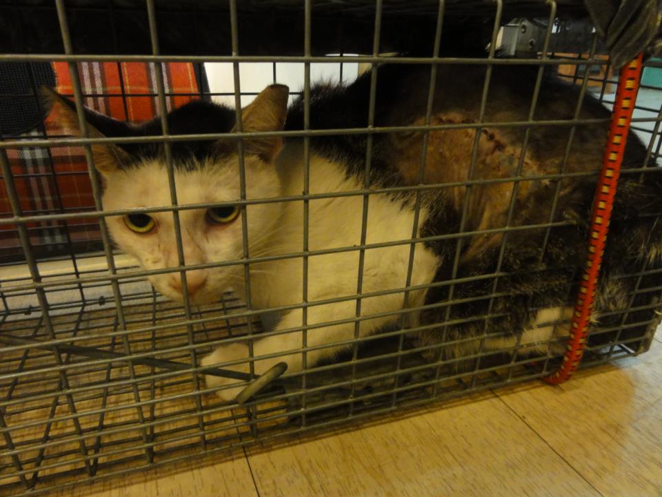 這貓是當地一位吳小姐求助幫忙這貓就醫,背部不明原因,一個大傷口,經誘捕送去縫合治療,並結紮,拆線後已放回原地。