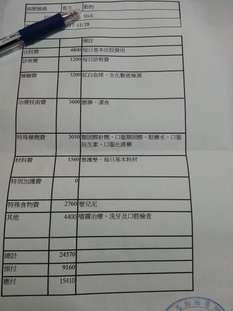 主題: Stick回診看鼻腔問題 申請者姓名: 臺北市支持流浪貓絕育計劃協會 花色: 申請日期: 2012-12-02 23:12:39 申請者部落格: 申請者臉書網址: 所在縣市/合作醫院: 台北市/其他院所醫助專案(醫院請先MAIL溝通) 治療費用: 26000元 需求人數: 26人 已結案 (2013-02-23 14:43:16) 報名人員: 比比(已付款)、Canis Lin(已付款)、Jessica Tsai(已付款)、米莉亞(已付款)、YATINE0112(已付款)、鄭雅邠(已付款)、River Lee(已付款)、Lina(已付款)、愛保養(已付款)、吳冠慧(已付款)、Nick Yang(已付款)、FiFi(已付款)、胖乖(已付款)、Shizuka Ho(已付款)、MACK(已付款)、Yen-Yuan Wang(已付款)、Mandy Wang(已付款)、林純華、林純華(已付款)、Shih Ju Chiu(已付款)、汪(已付款)、比比(已付款)、小飛仔(已付款)、Lai Fhifhi(已付款)、Vivienne Zhao(已付款)、塑膠人(已付款)、Mao Guai(已付款)、 候補人員: 動物病情說明: 還記得竹籤卡喉的Stick嗎?