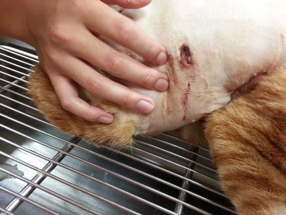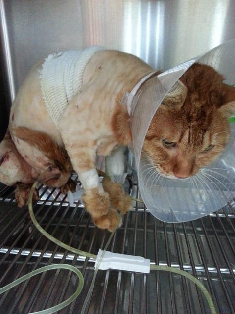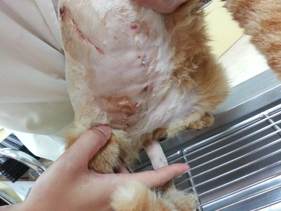 那隻橘貓(平媽)有多數咬傷傷口,