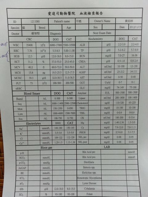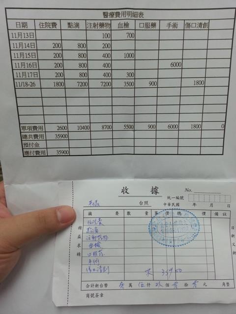 平媽第一階段11/13~11/26於愛達司動物醫院的醫療費用,需要各位大德的幫忙。感恩。