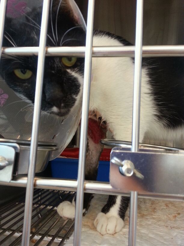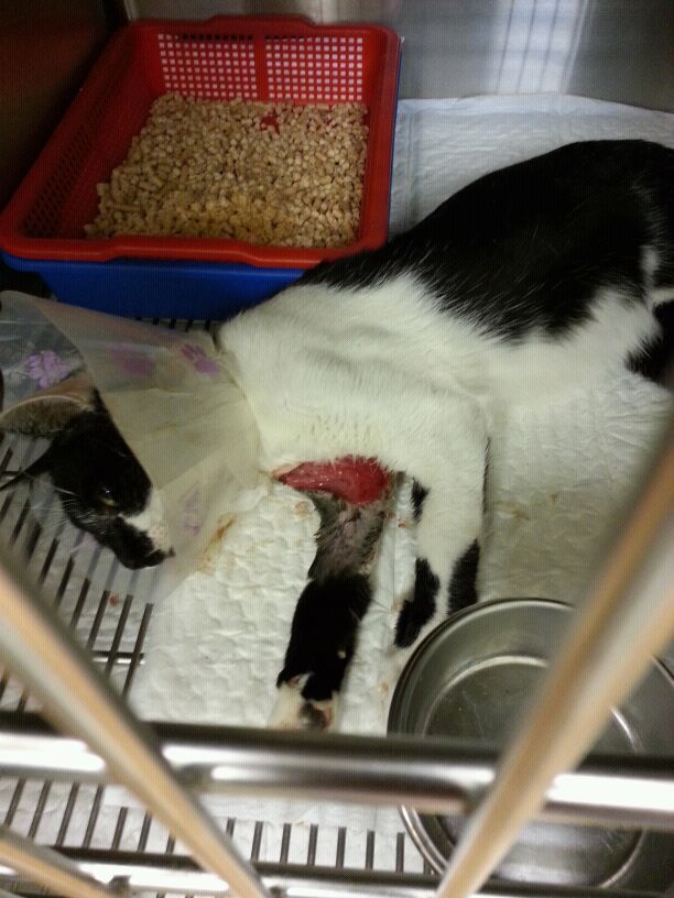 緊急就醫卻發現小黑白的液下有一大片傷口!!