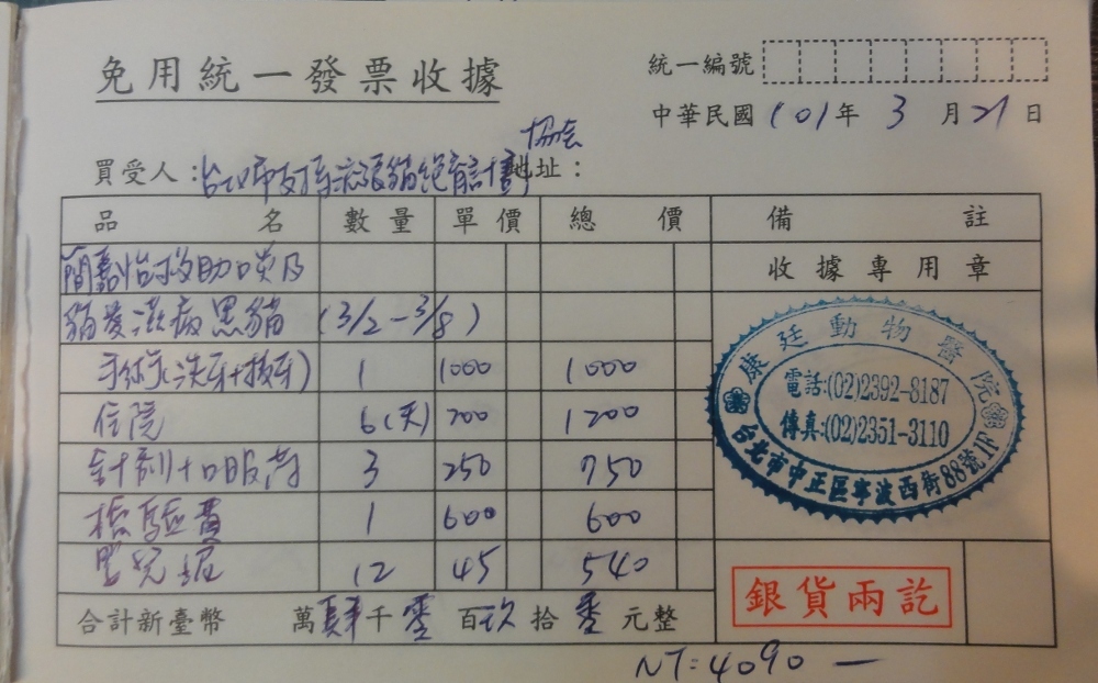 收據可抵稅請將地址mail至cashier@tnrtw.org0912940006763