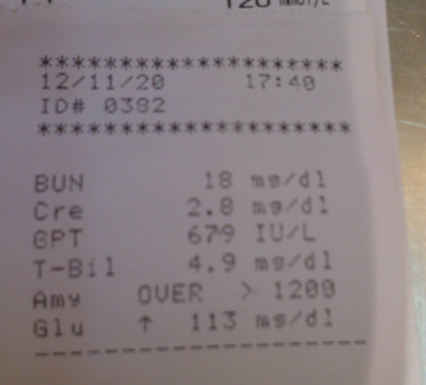 經送醫檢查發現嚴重貧血,嚴重黃疸,嚴重脫水 ~