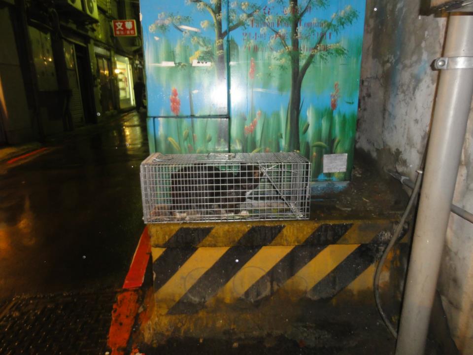牠留在原地,火速趕去誘捕,貓肚子餓,籠子一放好,沒幾分鐘就進籠
