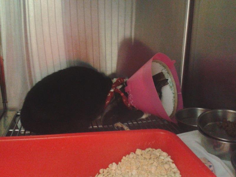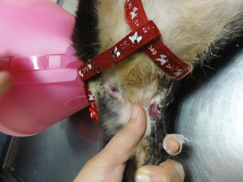 在院治療期間,也進行了結紮手術,還好橡皮筋已被貓扯掉了,傷口不