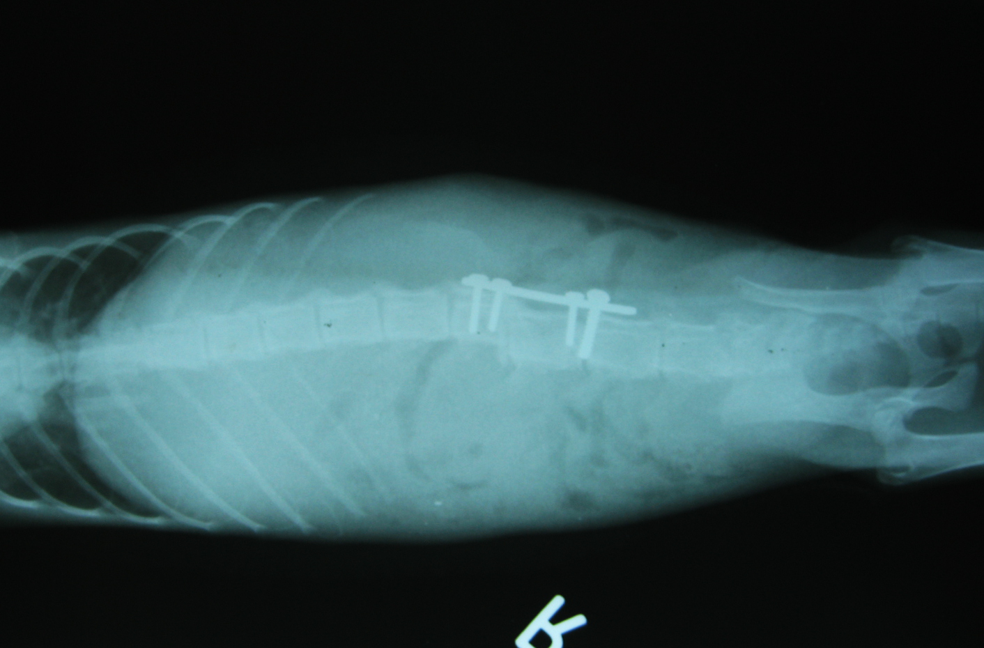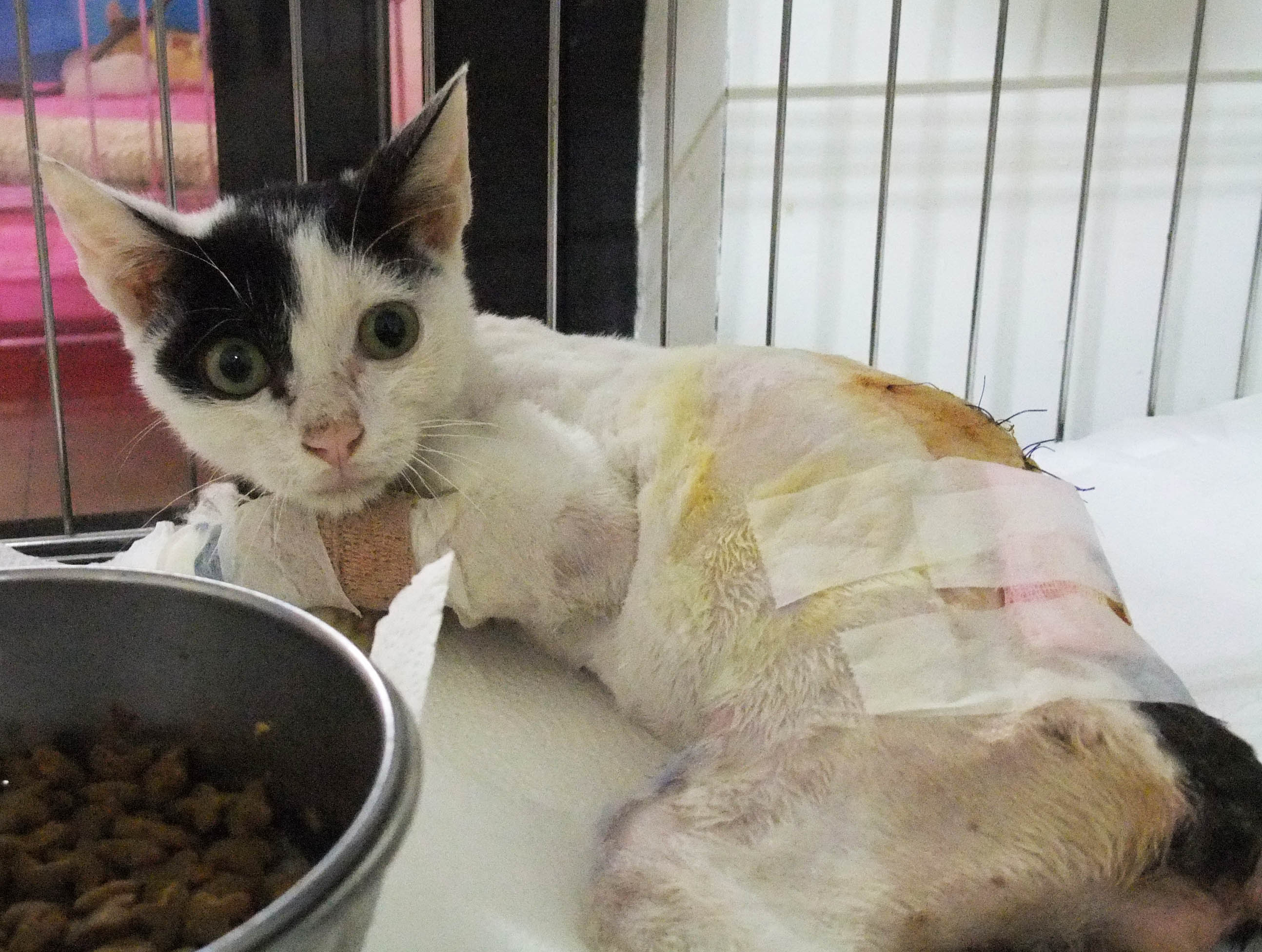在X光的顯示下,發現小將的脊椎錯位,下半身雖然冰涼但有輕微的痛覺反應,醫生說,有成功再站起的機率,可以努力看看。短短的一句話卻讓我思考了好久,因為,如果他手術後依舊癱瘓,貓咪不但一輩子陷入無法爬起的痛苦中,而且可能還需人工擠尿和擠便,重要的是,原發現的愛心姐姐無法收容他,未來的他該何去何從?