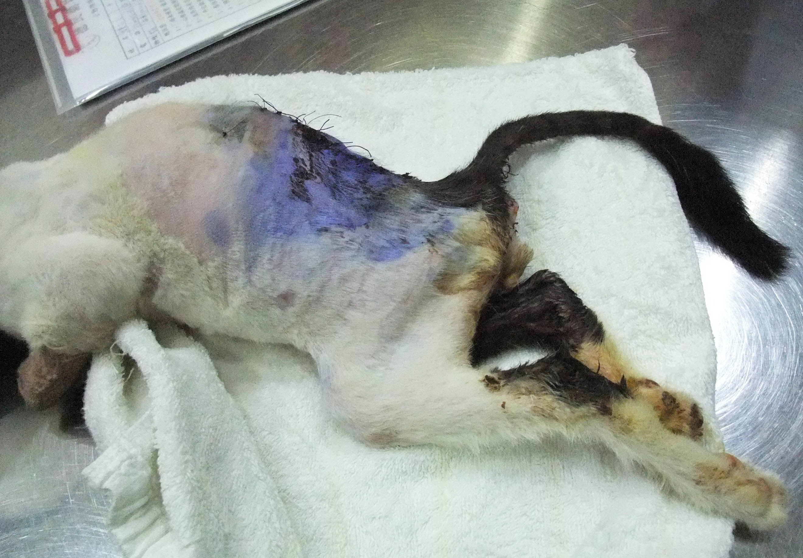 這隻被狗咬傷造成脊椎錯位而癱瘓的貓,我取名為小將,因為他總是忍著疼痛,一在而三的桿直身體努力想爬起,像個不屈不饒的將士一樣,堅強且強韌的生命力讓所有的人動容。