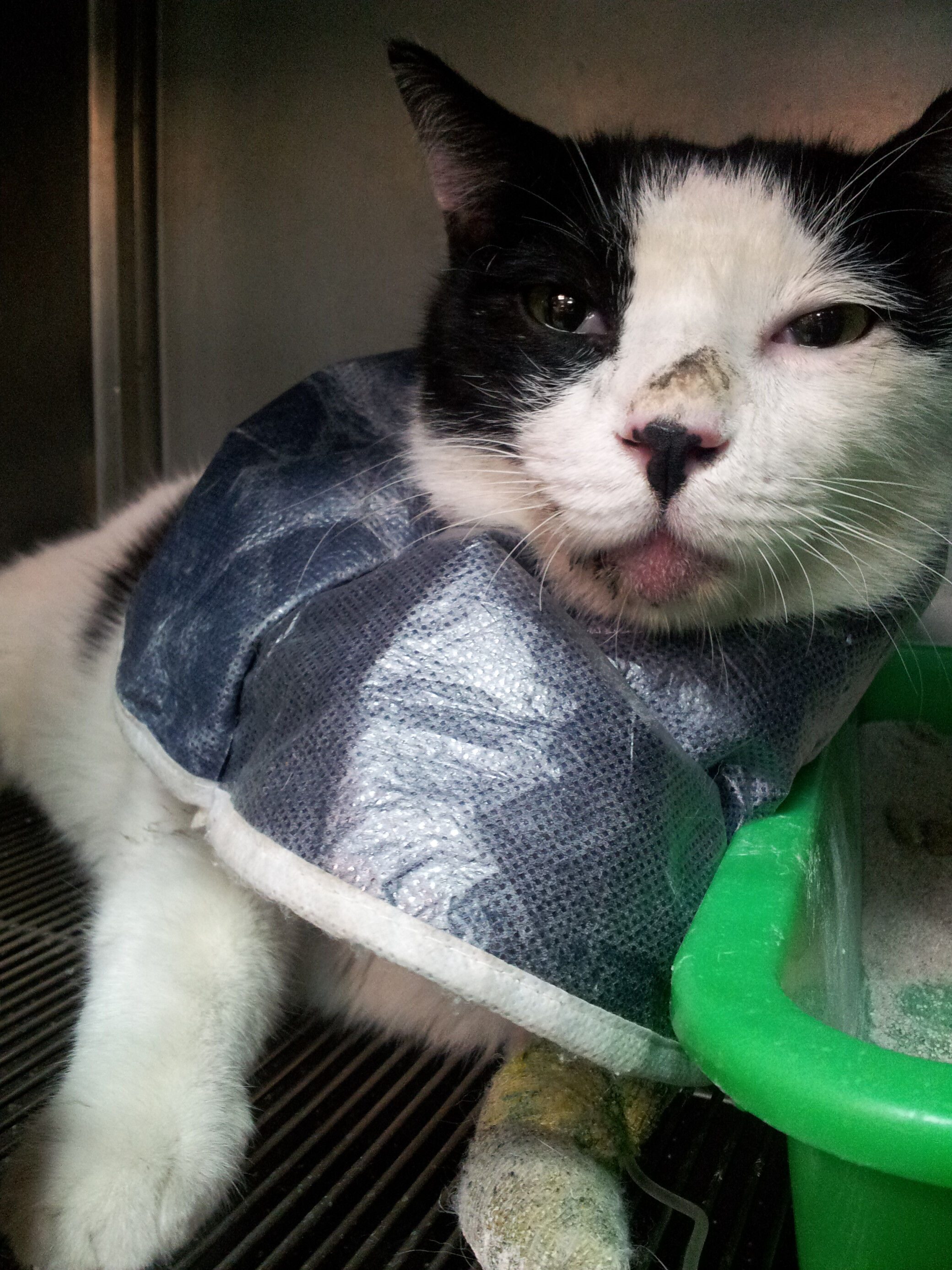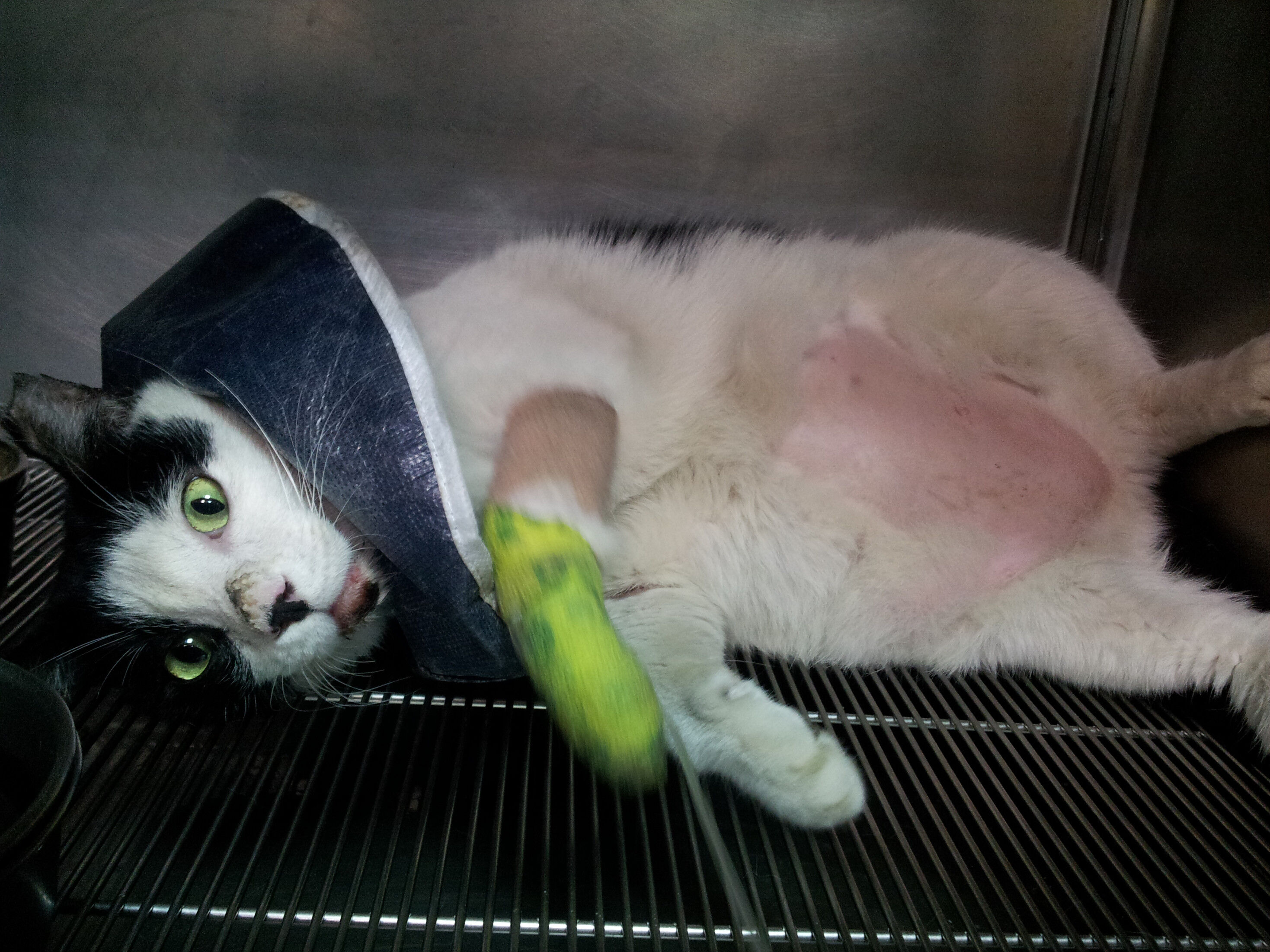 貓咪出院後,由愛媽王阿姨接回家裡中途並繼續療養(還不能讓貓隨意跑跳)。