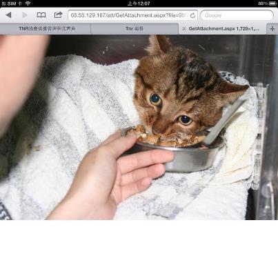 主題: 高雄路倒被收到收容所的虎班貓 申請者姓名: 陳美蘭 花色: 申請日期: 2012-12-12 13:46:10 申請者部落格: 申請者臉書網址: 所在縣市/合作醫院: 高雄市/回生動物醫院 治療費用: 14940元 需求人數: 16人 已結案 (2013-02-23 14:39:16) 報名人員: Nonie Huang(已付款)、Nina(已付款)、莊孝國(已付款)、sylvia(已付款)、周早安(已付款)、柯元傑(已付款)、KK麵貓匪(已付款)、Marilou Chien(已付款)、Chanta Twinkle(已付款)、Chanta Twinkle(已付款)、Hsaiohui Chen(已付款)、Hsaiohui Chen(已付款)、Fox Yo(已付款)、CrystalBall(已付款)、Alang Tsao(已付款)、Phoebe Lin(已付款)、 候補人員: Joyce Hsu、 動物病情說明: 路倒被送進收容所的的虎班...有好強的生命力.雖然四肢不能動..還是想要活下去.自己掙扎著要吃..好令人不捨.持續的治療中有好大的進步..食慾的部分也恢復到正常