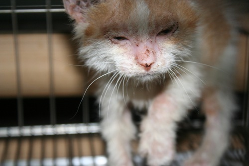 求援民眾立即幫忙送醫,小貓咪除了強陽性貓瘟及嚴重的皮膚病