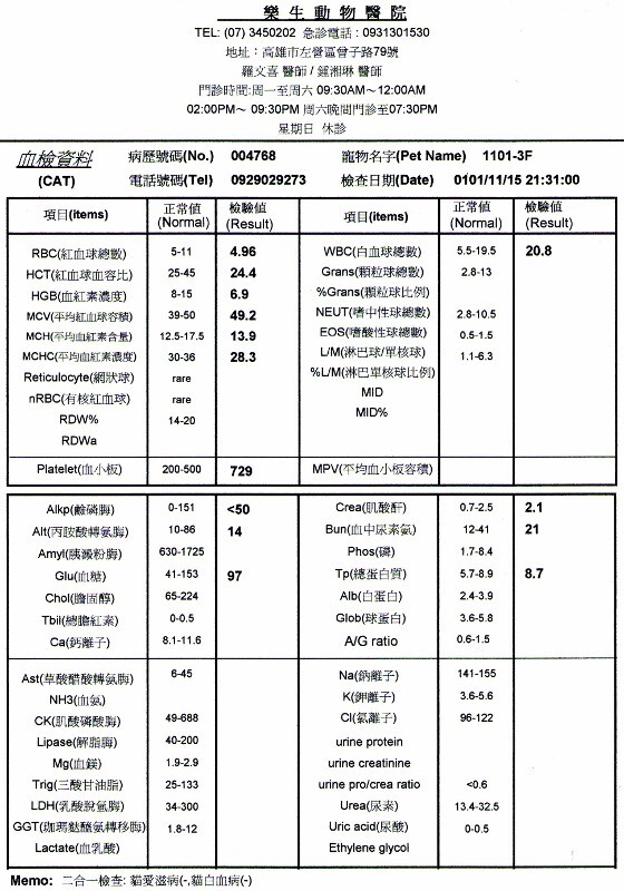 1. 血液生化檢查(QBC+肝腎指數6項)+離子