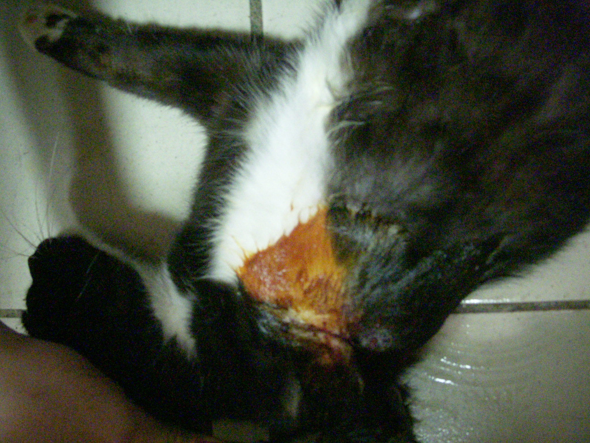娃娃和她的同窩兄弟們從小在新店光明街一帶長大,她的兄弟很會捕捉老鼠,所以當地居民從小餵食他們也做了TNR,數個月前居民發現娃娃被繩子勒緊頸腋,向陳愛媽求救想送娃娃就醫,娃娃雖從小被居民餵食但較野不親人,且因之前TNR故,認得誘捕籠和陳愛媽,誘捕了2個多月,娃娃寧可到他處覓食也不碰誘捕籠的食物,看見愛媽更是拔腿就跑,在幾乎要放棄的時候,8/27凌晨居民有機會用裝貨的塑膠籃蓋住娃娃,再通知陳愛媽前往協助, 剪了繩但傷口已發出臭味,趕緊送醫治療,娃娃的腋下傷口一直因活動而撕裂 癒合較慢,住院治療3個月後終於傷口較小,由陳愛媽帶娃娃回家照顧繼續餵藥,會等娃娃傷口全部癒合好後才會釋回原居住地,醫療費用因住院較久而較多,感謝恩加醫院提供優惠,但還需請大家一起來幫忙娃娃的醫療費用, 感恩!