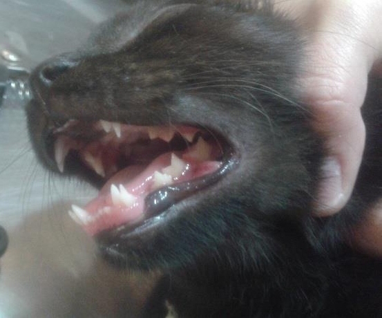 出生時,先天自體免疫力就較差,所以才會還只是個幼貓階段竟然就已經口炎.牙齦發炎長新牙,但是卻舊牙沒掉落+牙齒有多顆不太好..種種理由導致舌頭吐出來..